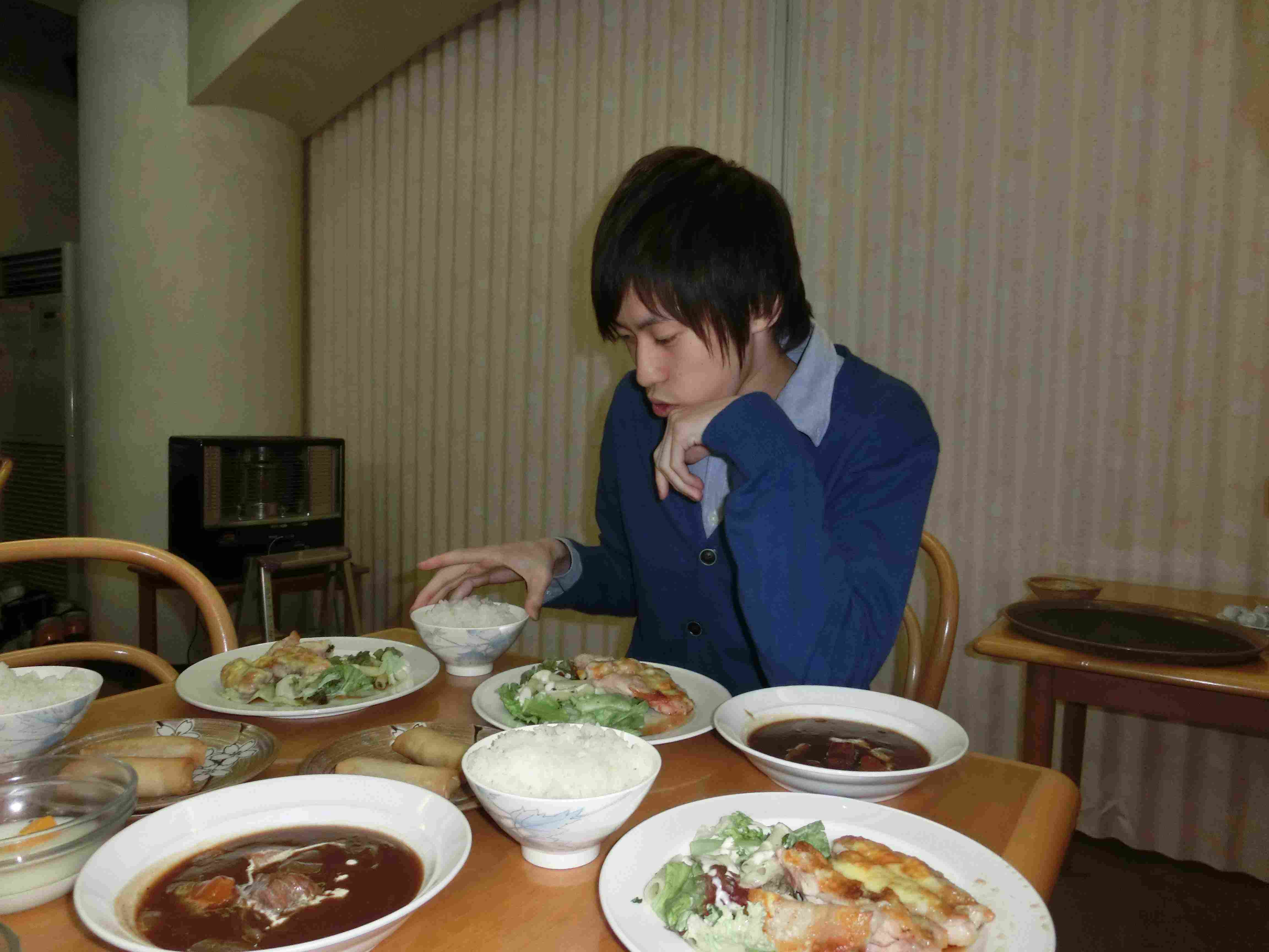 富田にしゃもじが当たるというミラクル。隣の晩ごはんに突撃してね