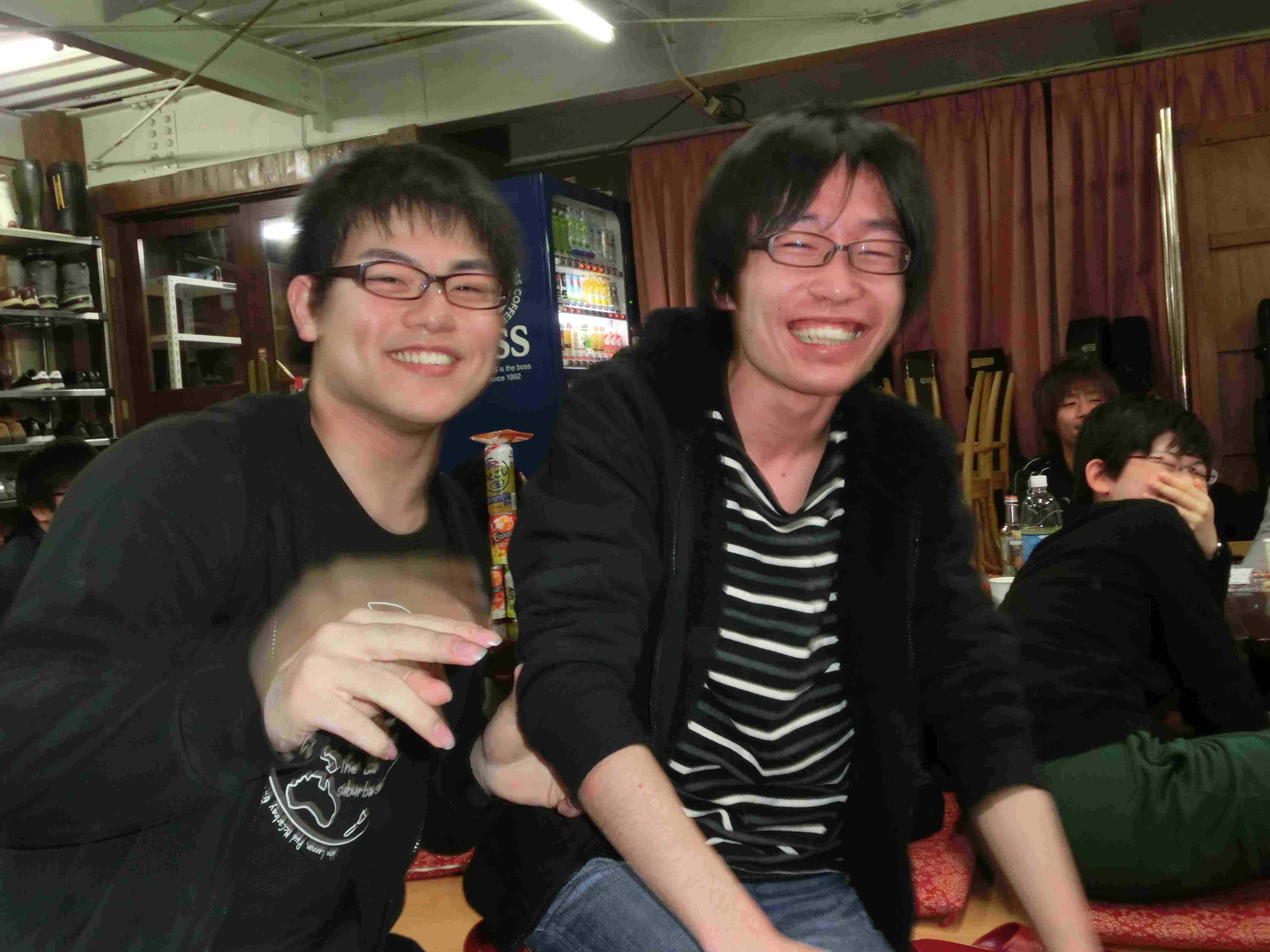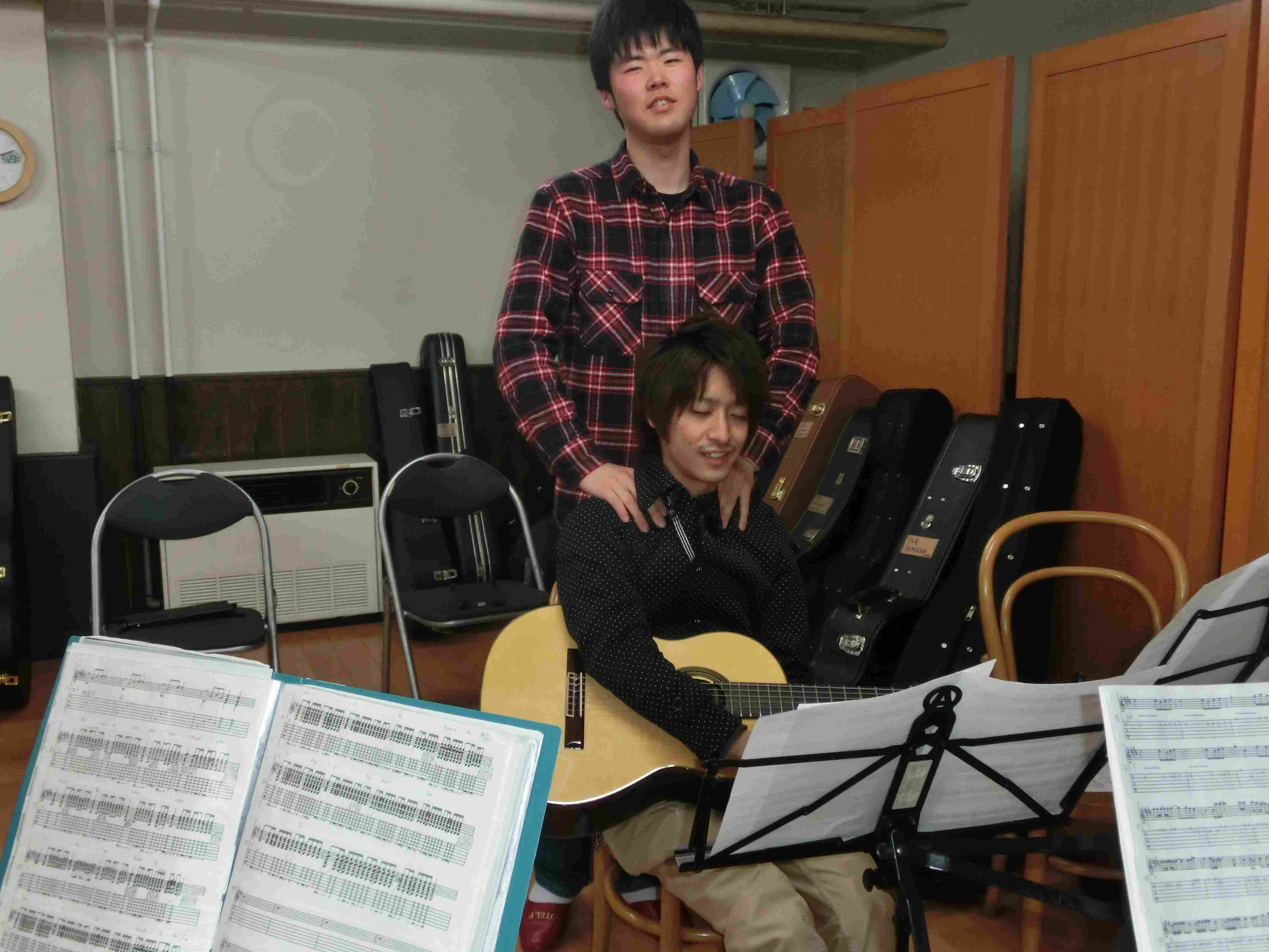 坂部と暁登。坂部はサークルでは珍しい二刀流使いのギタリストです。
