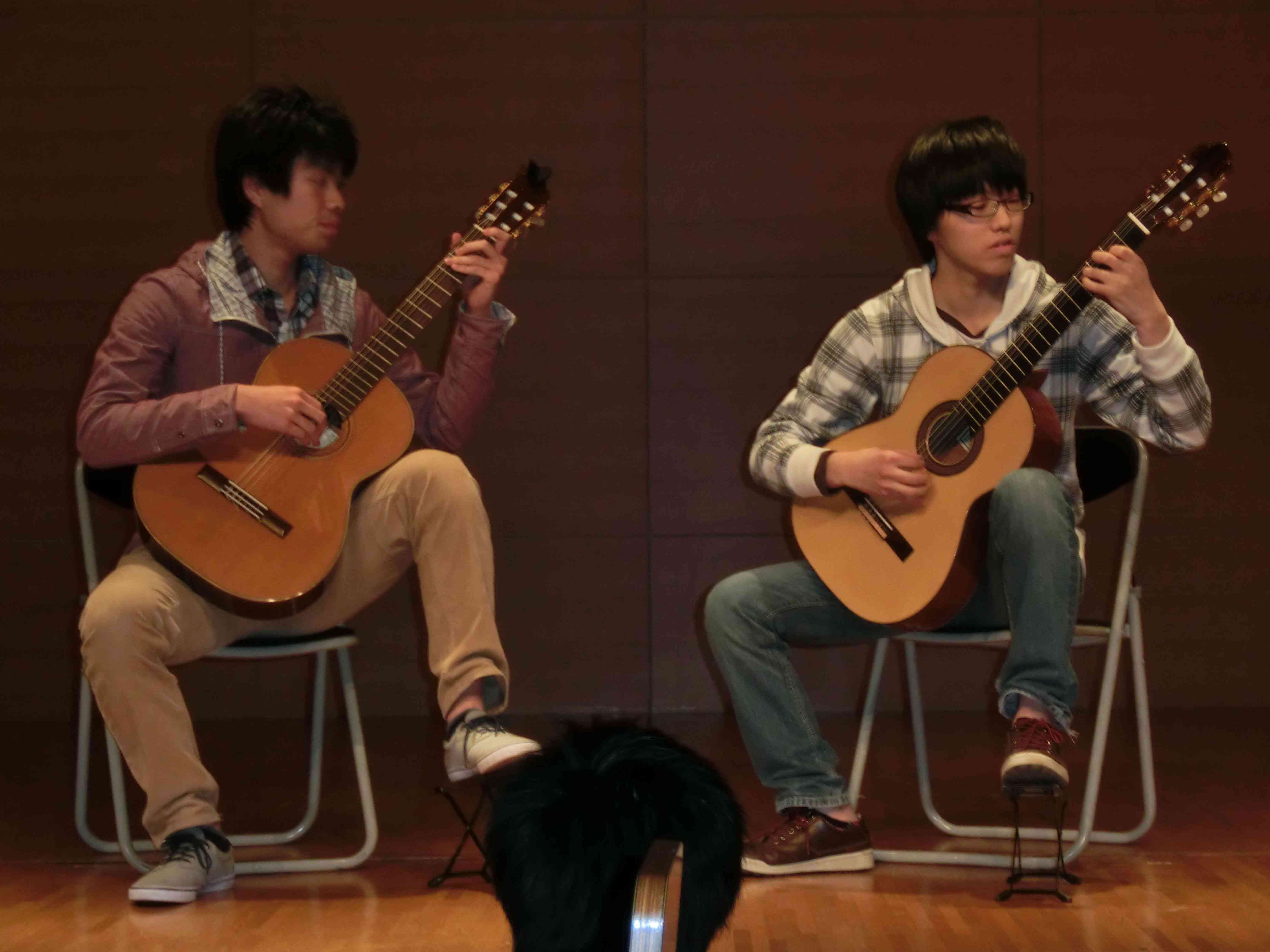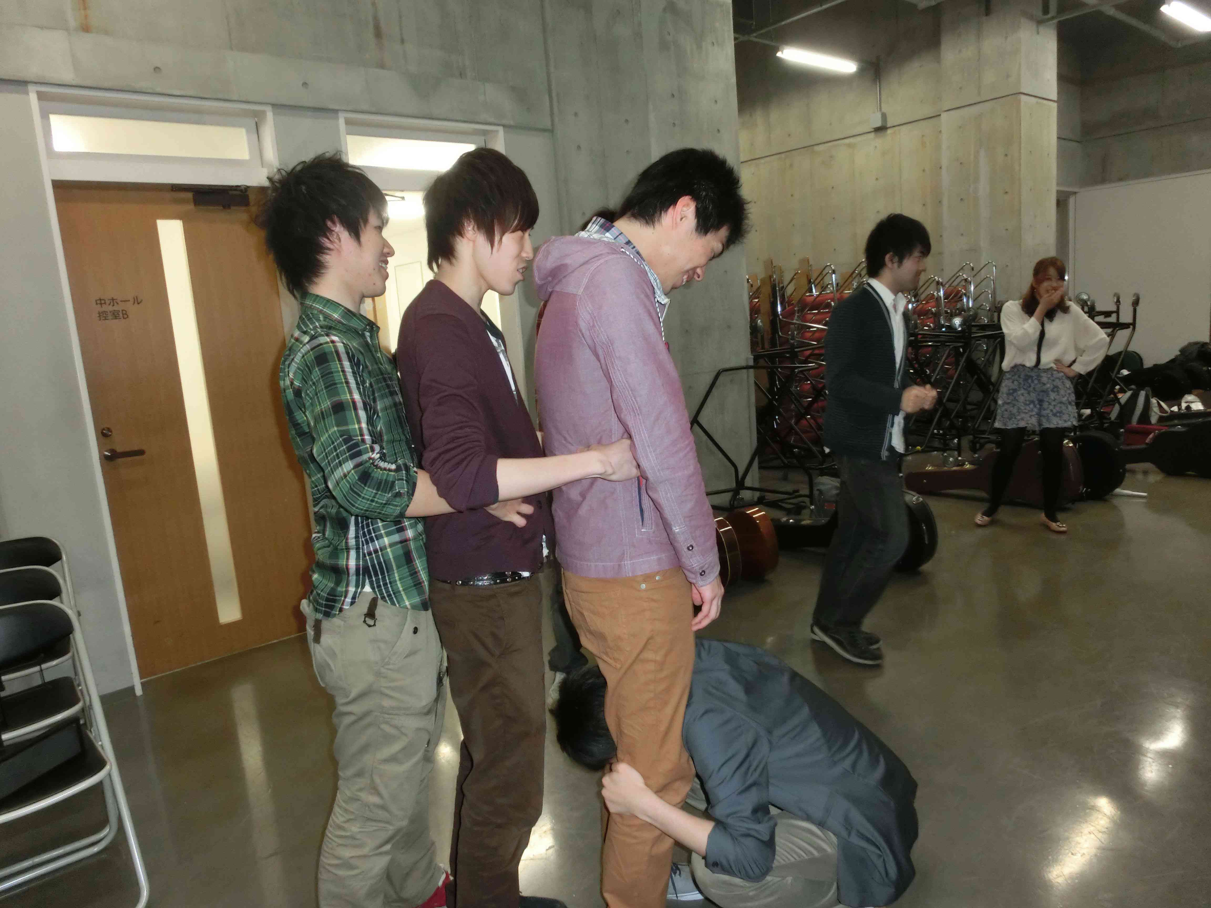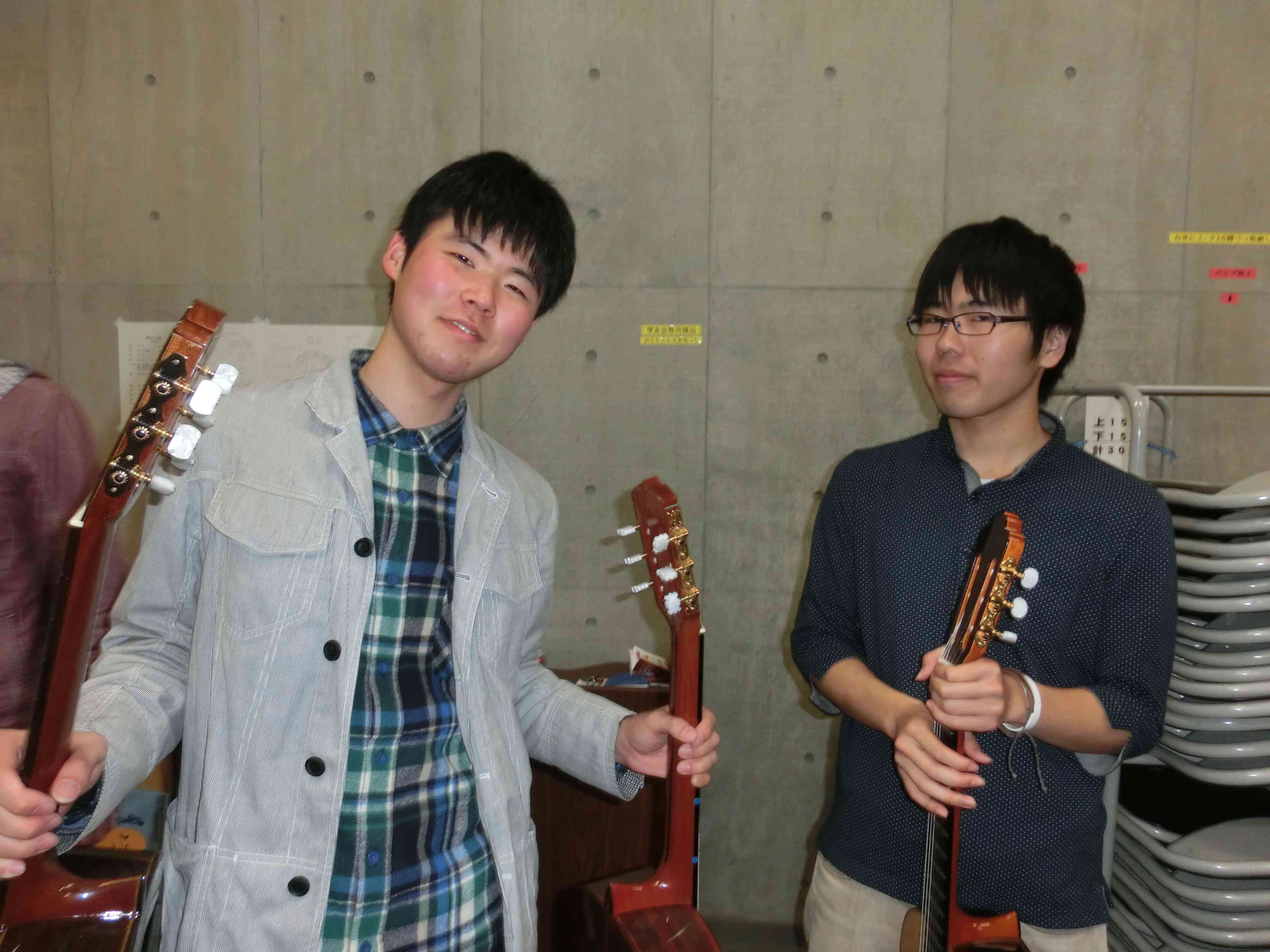 新入生歓迎コンサート 活動記録 2013年12月31日 4月20日(月)と22日(水)に新歓コンサートがありました。一人でも多くの新入生を獲得するために、2、3年生はこの日の為に猛練習を重ねてきました。 ステマネ初仕事。お辞儀が得意です。 本番前のダブルピース。 2、3年生コンビ。右の人チャラい! Summerの二人。夏を感じさせるあつい演奏でした。新歓は春です。 師弟奏。弾き方が二人ともそっくりですね。 星に願いをの5人。うっとりします。 二重奏版のアメイジング・グレイス。この重奏のおかげで仲違いが解消されました。 中大の押尾コータロー。彼の指先のテクニック凄いです。テクニック。 2年生トリオ。正直どの重奏よりも安定してました。未来が楽しみです。 前回の定期演奏会でも演奏された異邦人。横山のメロディーが目立ってました。ステージでは真剣でしたが、その頃舞台裏はとても楽しい雰囲気でした。 楓の5人。ギターに楓をあしらっています。新歓は春です。 コテギのLこと鈴木。イケメンです。 富田と関。後輩に愛される男です。 3男の悪ノリ。僕らはいつも繋がっている。 出番の前のお絵かきスペース。左下のピカチュウ情けないです。 坂部と暁登。坂部はサークルでは珍しい二刀流使いのギタリストです。こんな感じでのんびりとした雰囲気で進行していった新歓コンサートでしたが、何とか成功に終わり、多くの新入生の勧誘に成功しました。これで3学年揃った新生コテギ。これからが楽しみです。おまけ おわり PR