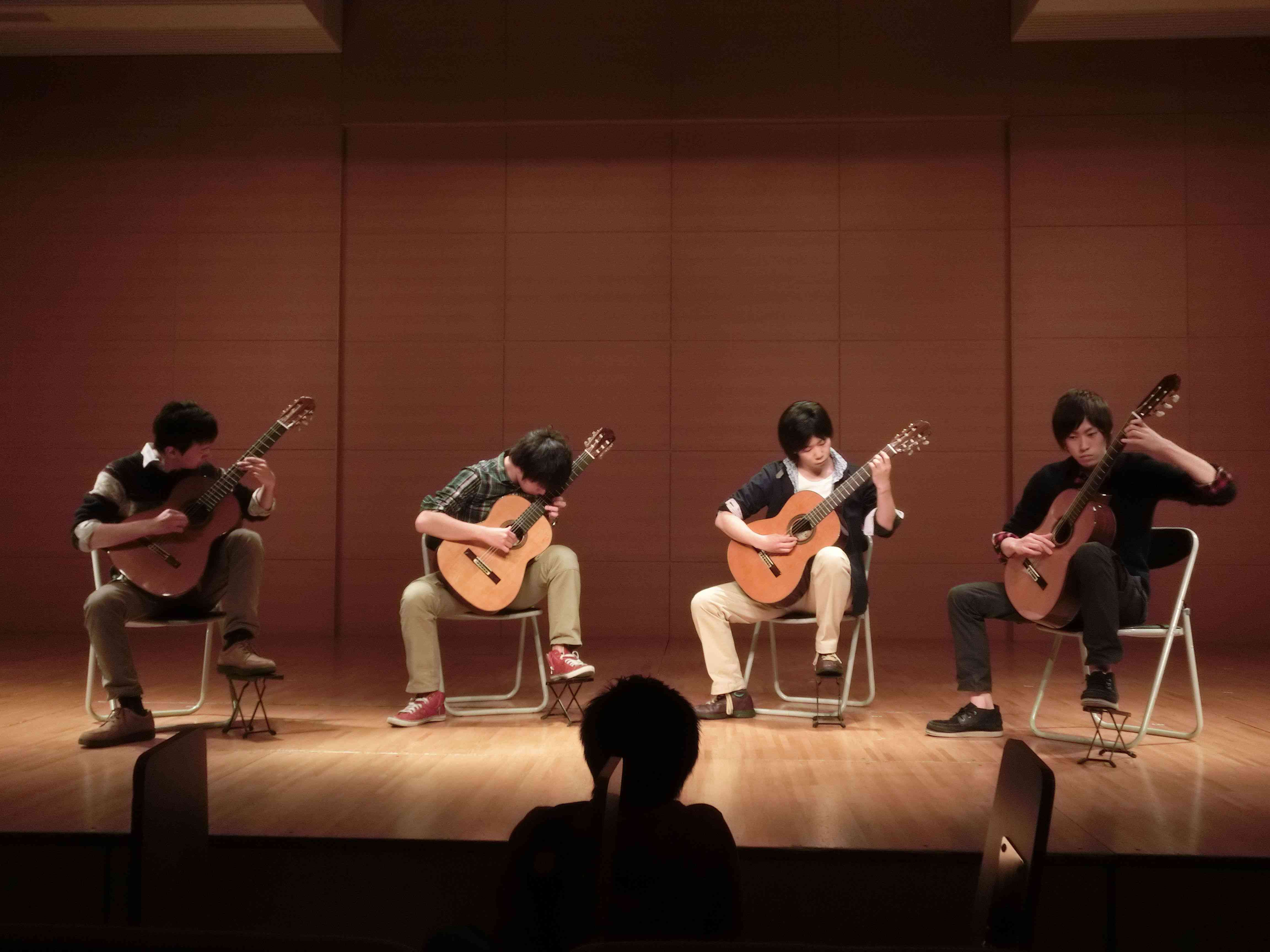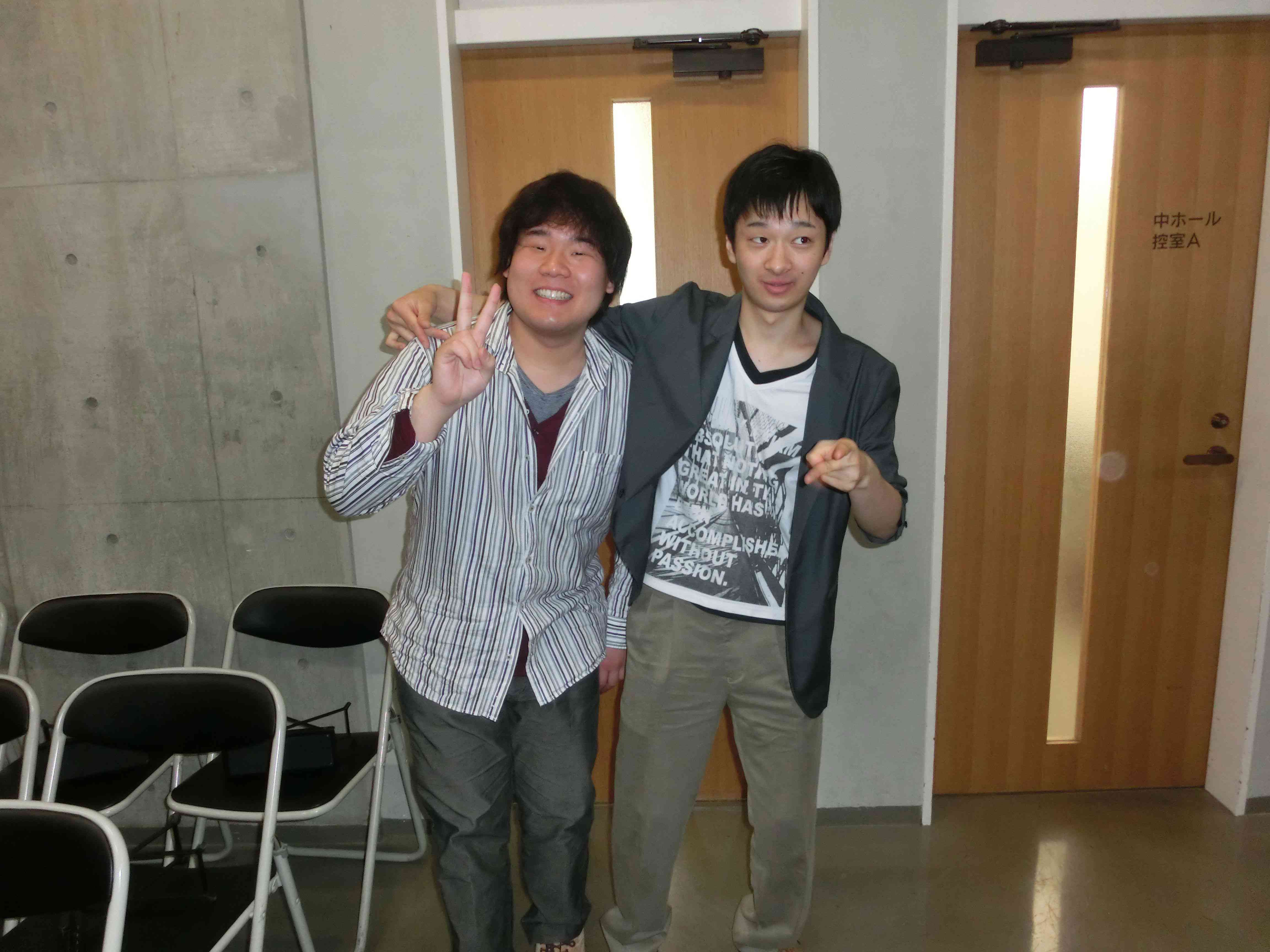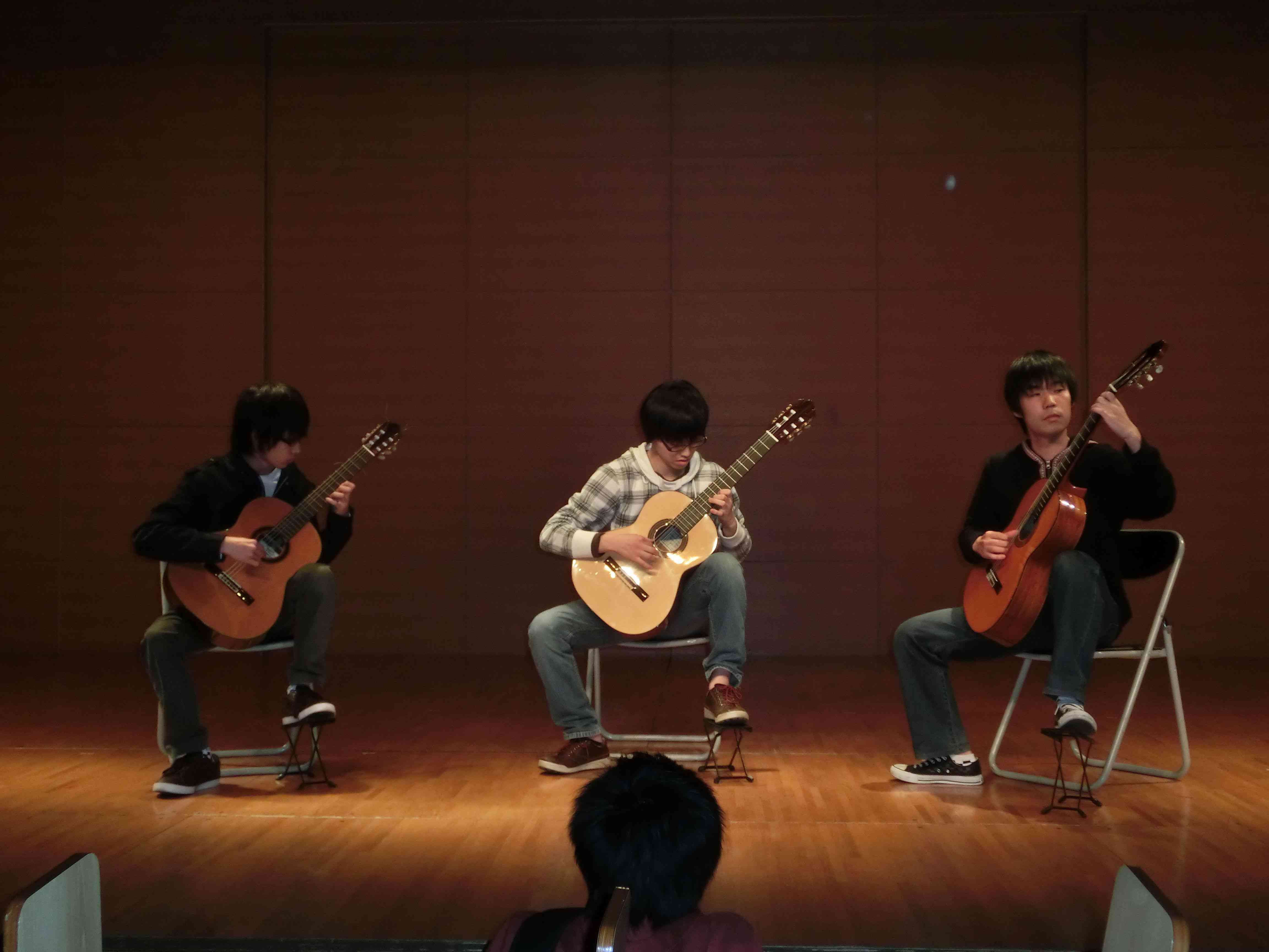 新入生歓迎コンサート 活動記録 2013年12月31日 4月20日(月)と22日(水)に新歓コンサートがありました。一人でも多くの新入生を獲得するために、2、3年生はこの日の為に猛練習を重ねてきました。 ステマネ初仕事。お辞儀が得意です。 本番前のダブルピース。 2、3年生コンビ。右の人チャラい! Summerの二人。夏を感じさせるあつい演奏でした。新歓は春です。 師弟奏。弾き方が二人ともそっくりですね。 星に願いをの5人。うっとりします。 二重奏版のアメイジング・グレイス。この重奏のおかげで仲違いが解消されました。 中大の押尾コータロー。彼の指先のテクニック凄いです。テクニック。 2年生トリオ。正直どの重奏よりも安定してました。未来が楽しみです。 前回の定期演奏会でも演奏された異邦人。横山のメロディーが目立ってました。ステージでは真剣でしたが、その頃舞台裏はとても楽しい雰囲気でした。 楓の5人。ギターに楓をあしらっています。新歓は春です。 コテギのLこと鈴木。イケメンです。 富田と関。後輩に愛される男です。 3男の悪ノリ。僕らはいつも繋がっている。 出番の前のお絵かきスペース。左下のピカチュウ情けないです。 坂部と暁登。坂部はサークルでは珍しい二刀流使いのギタリストです。こんな感じでのんびりとした雰囲気で進行していった新歓コンサートでしたが、何とか成功に終わり、多くの新入生の勧誘に成功しました。これで3学年揃った新生コテギ。これからが楽しみです。おまけ おわり PR