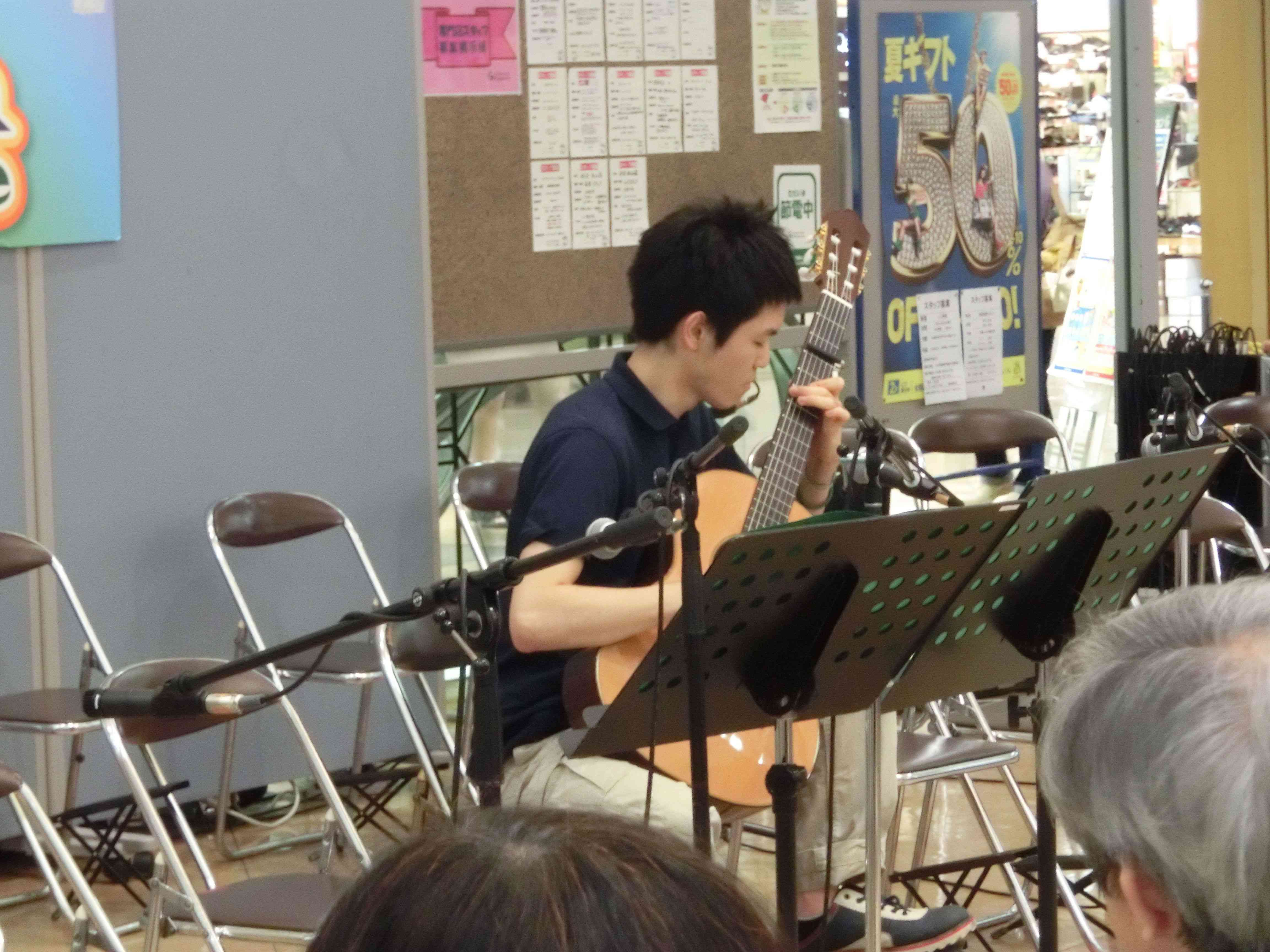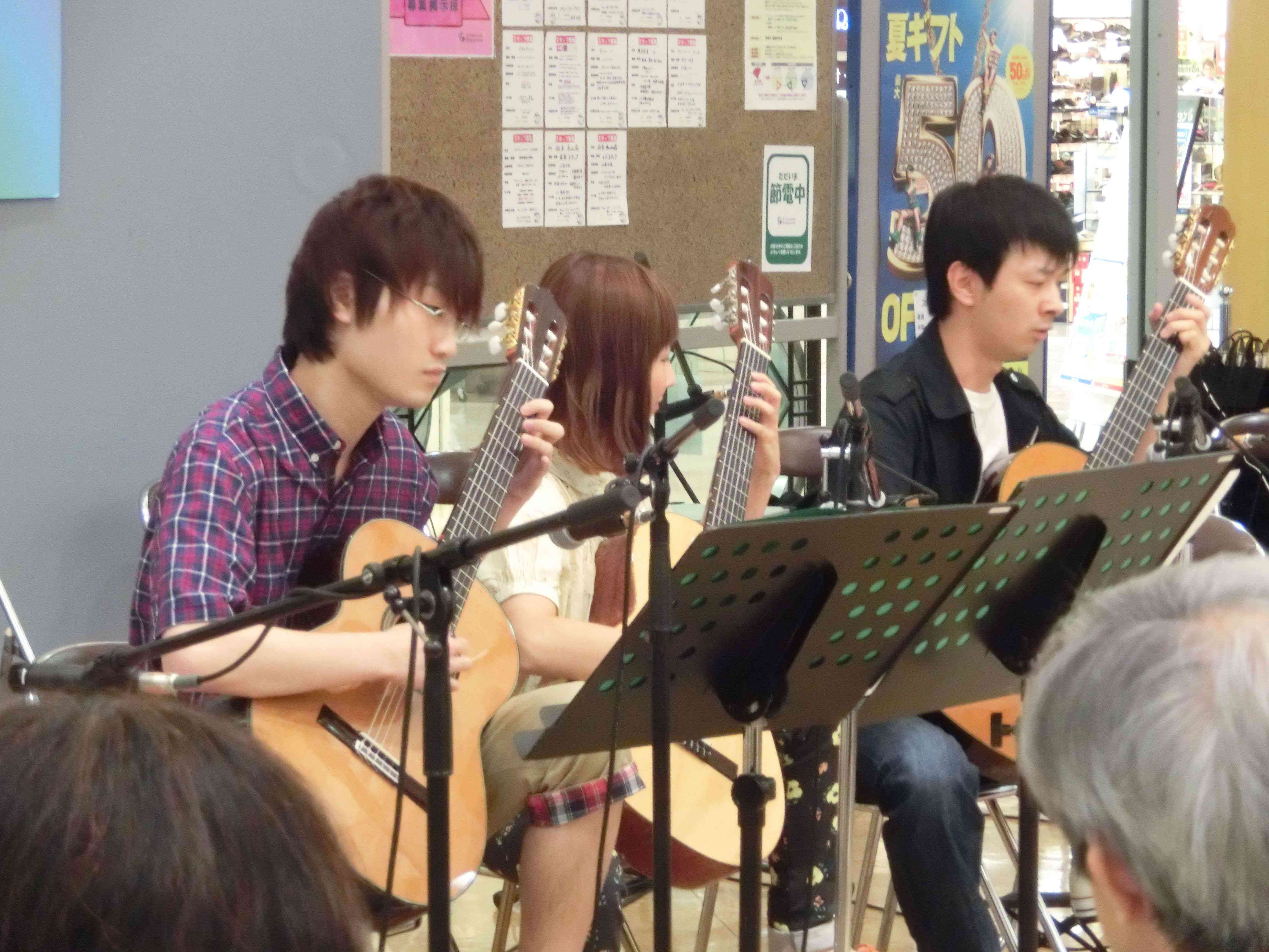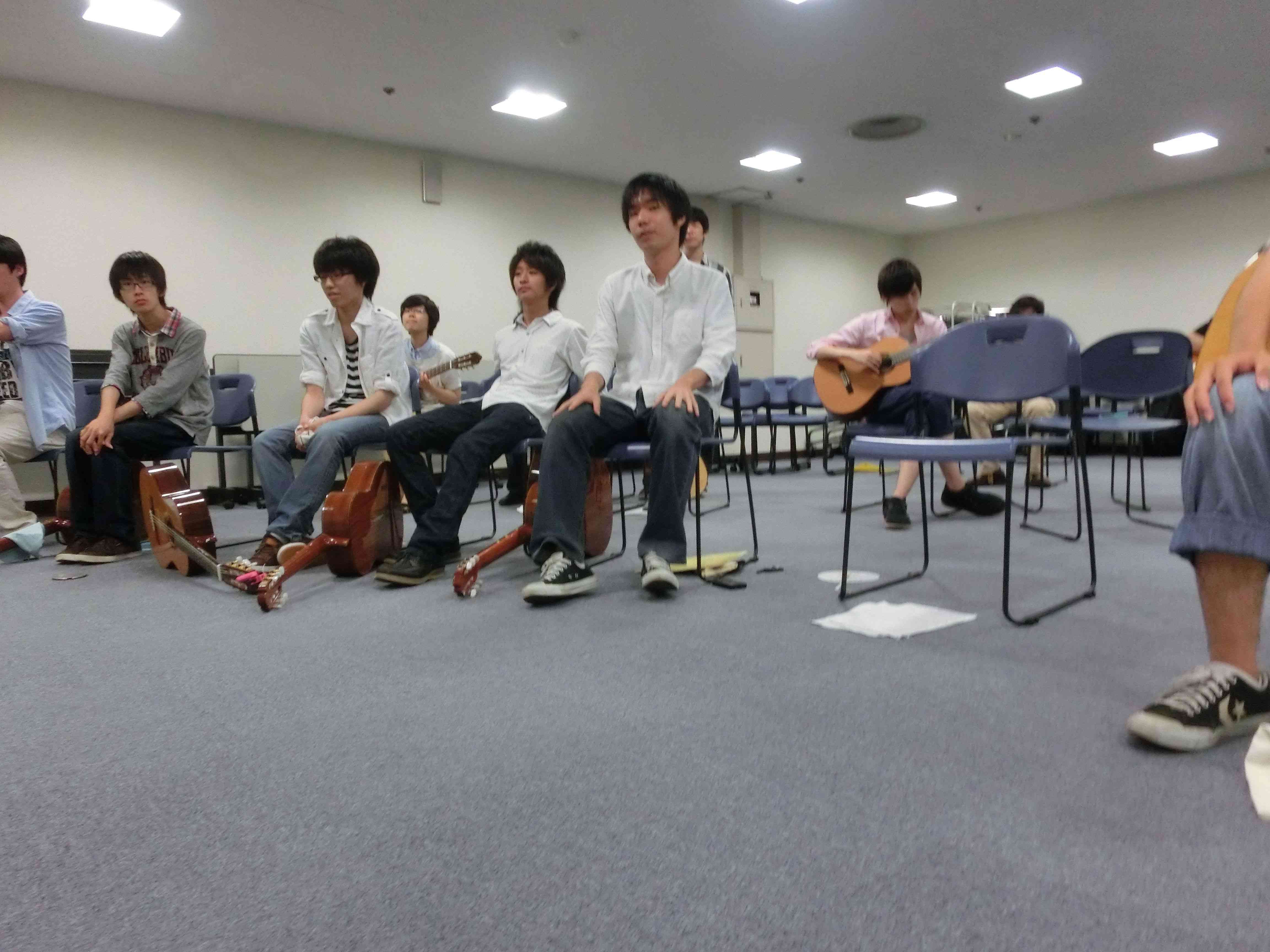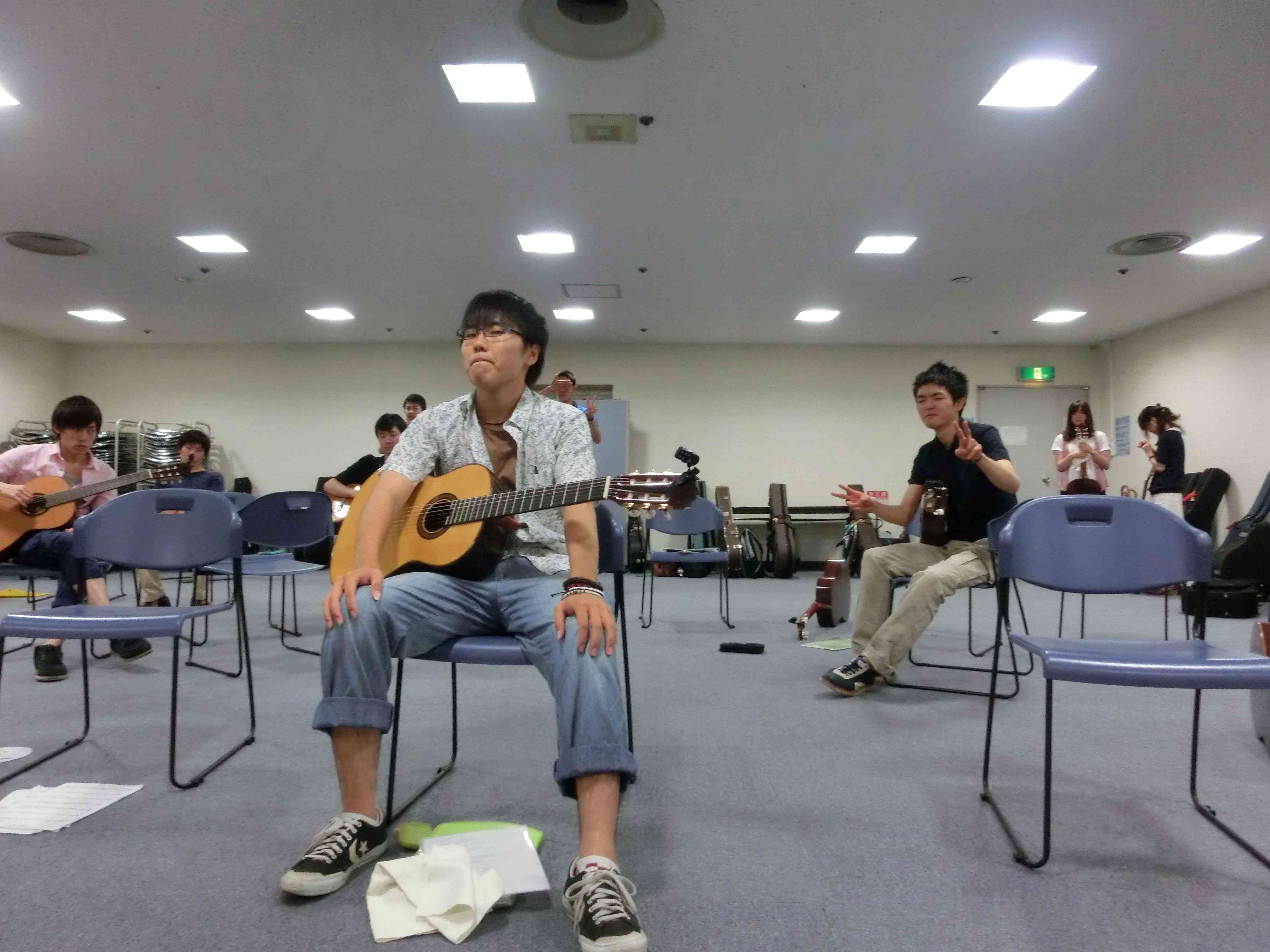 永山コンサート! 活動記録 2013年12月31日 7月28日(日)に、京王永山駅から徒歩1分のグリナード永山にて、古典ギタークラブのコンサートが行われました。 画像は先輩方。衣装がシュールです。外部のコンサートなので、開演まで大きな控え室を使わせていただきました。 事前打ち合わせ中。こいつはナメてる。 本番前なので若干緊張気味ですが、皆出番を楽しみに待っています。しかしそれでも本番までなかなか待ち時間があったので、 飽きた。 飽きた。 あきと。そしてようやく開演となりました。 開演前。大勢のお客様に来ていただきました。 ドビュッシーの月の光。しっとりとスタート。 雪原のリビングデッド。両サイドの表情が曲に合ってますね。 よっくんの独奏。音が繋がっていて素晴らしい演奏でした。 二年生最強コンビ。相変わらず音質が美しい。 くしみずのお二人。大変華やかでございます。 ここで二年生二人によるトークショー。 ギャラリー苦笑い。 そして演奏。二人ともノリノリでいいね。 師弟奏ならぬ姉妹奏。会場中にメロディーが響き渡って気持ちが良いです。 ここから新指揮者の初舞台!ぐっさんの指揮で夜空ノムコウを演奏します。 指揮・演奏共にバッチリで、楽しい合奏となりました。 今年の永山コンサートは多くのお客さんが聴いて下さり、とても楽しい演奏会になりました。来年も是非、開催させていただきたいと思います。おまけ 原口先生と この人おわり PR