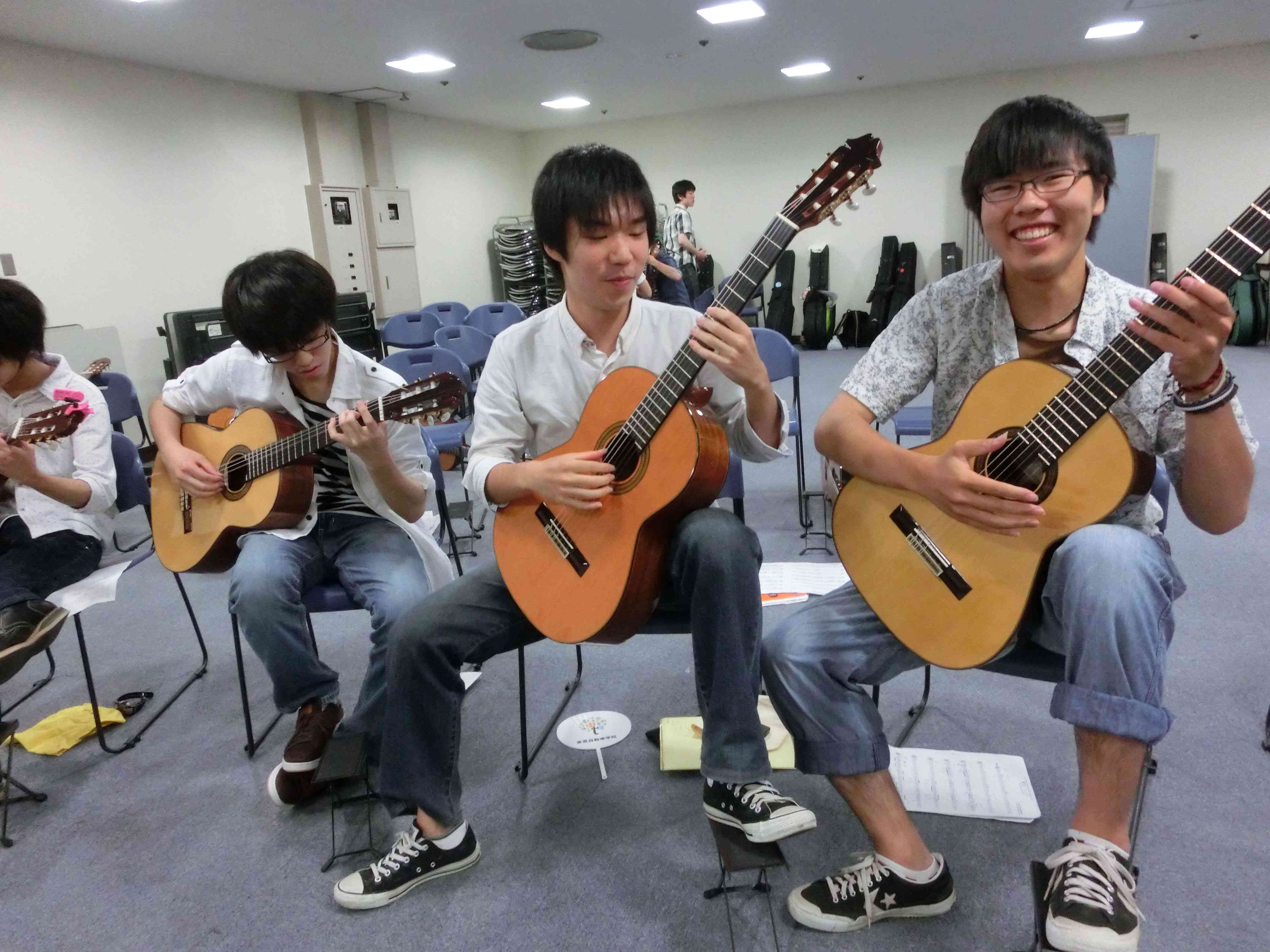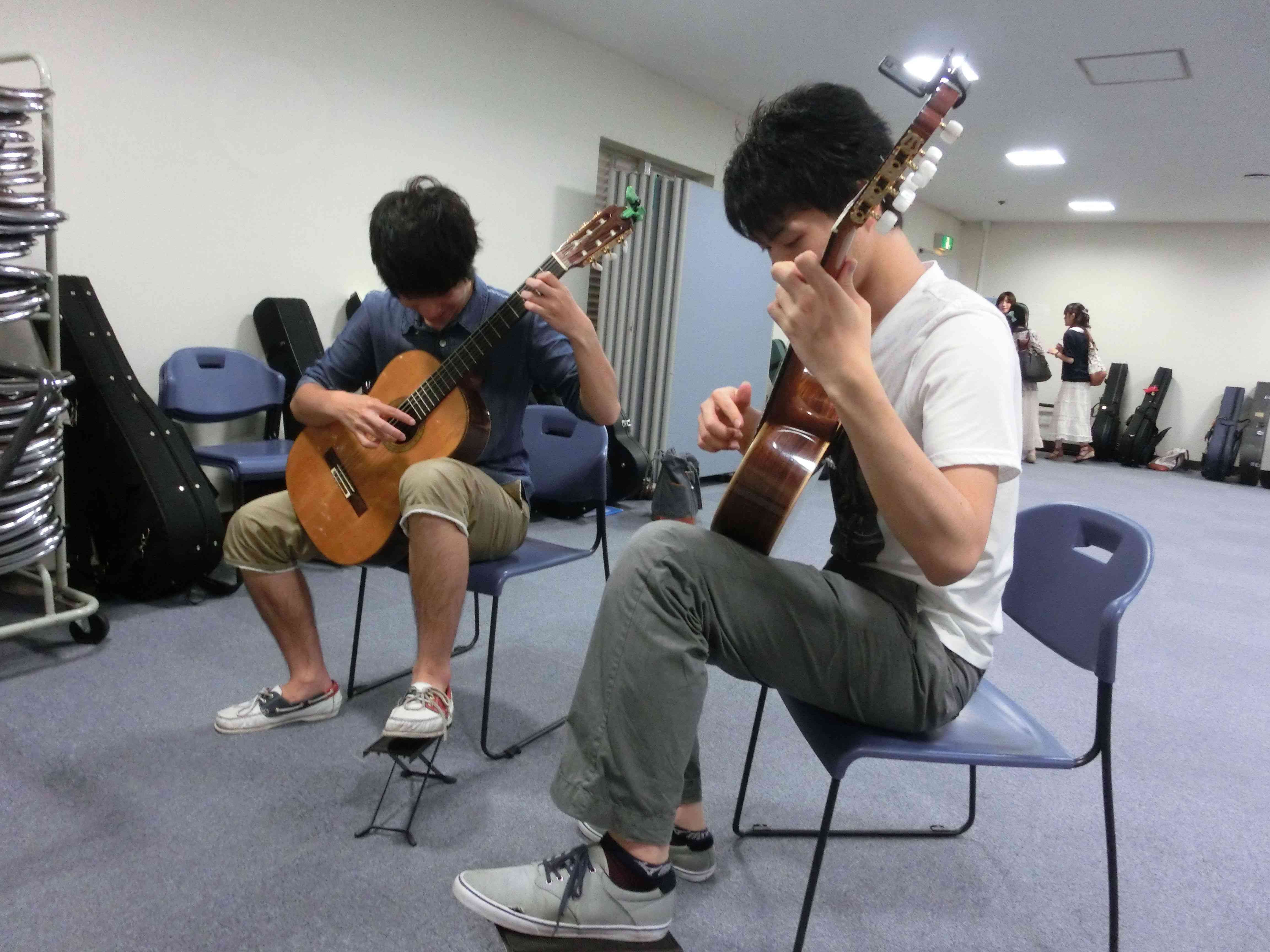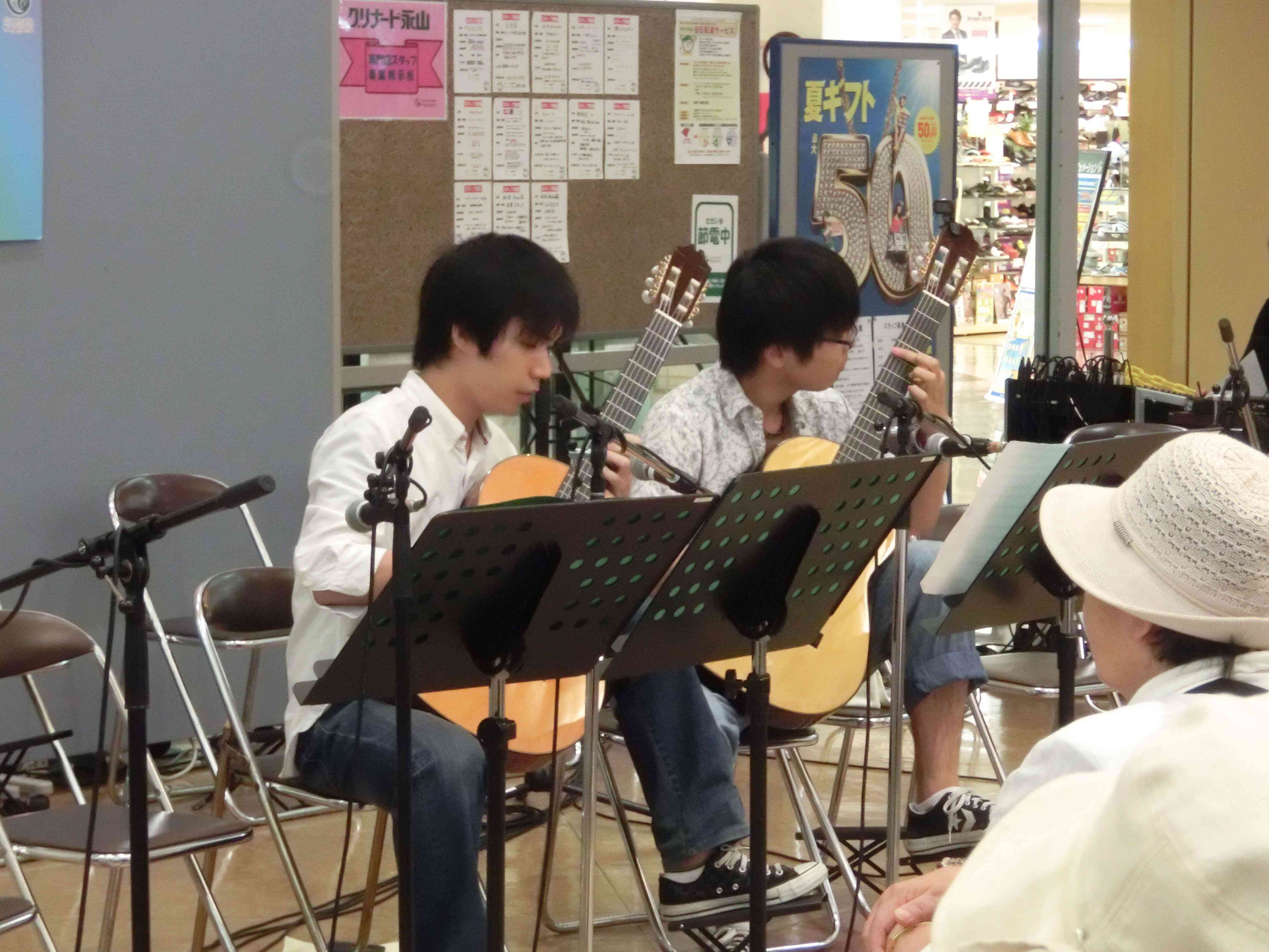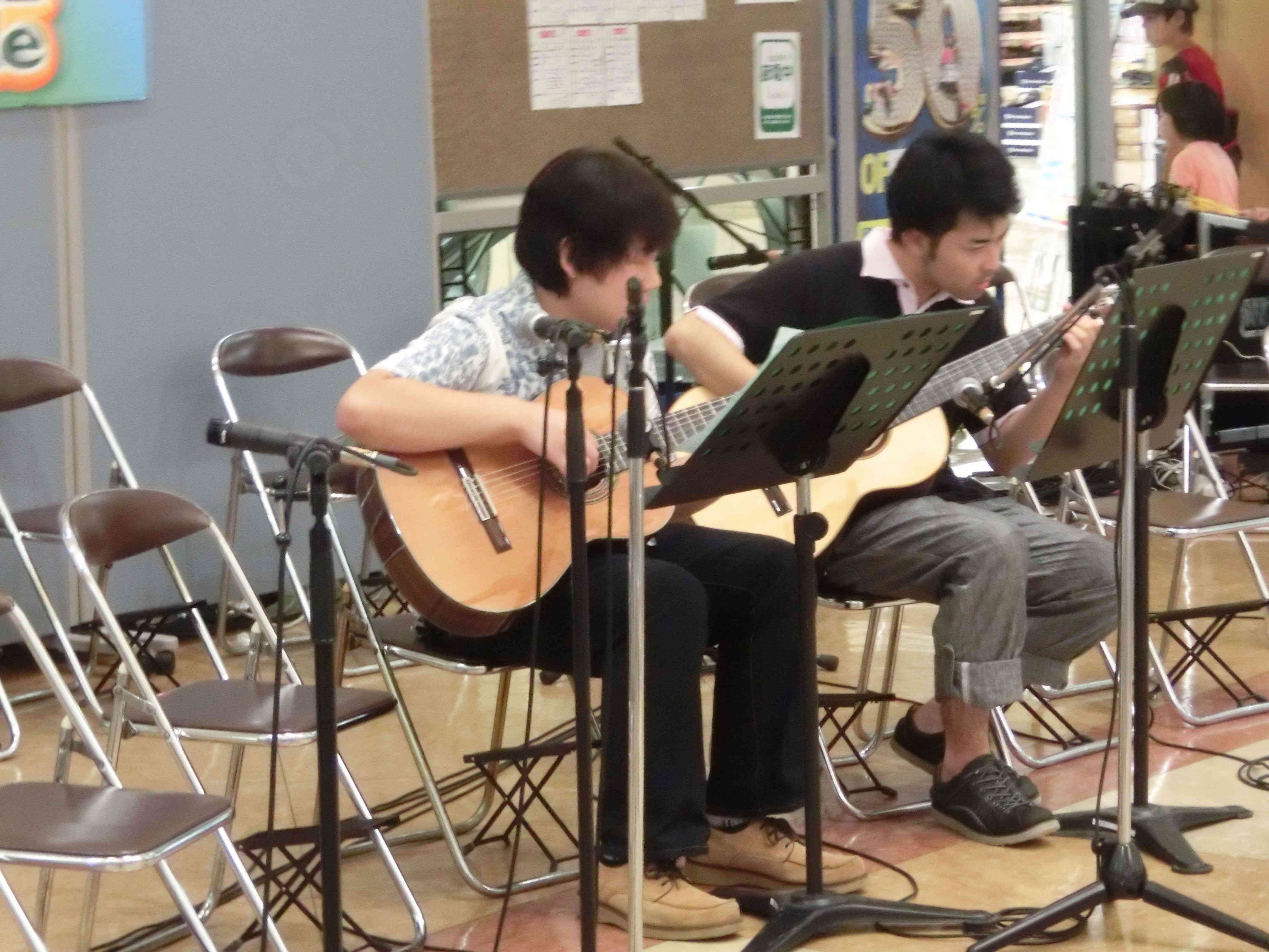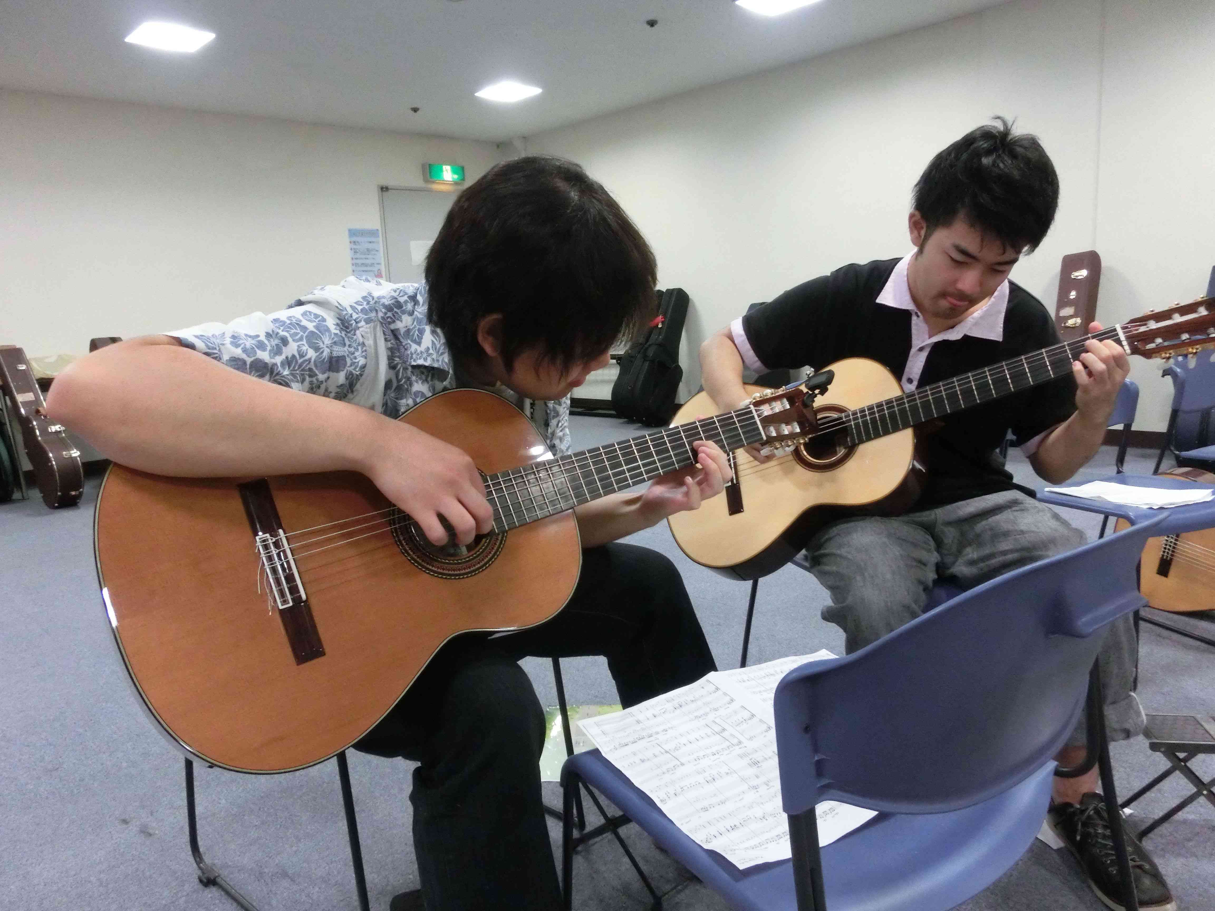 永山コンサート! 活動記録 2013年12月31日 7月28日(日)に、京王永山駅から徒歩1分のグリナード永山にて、古典ギタークラブのコンサートが行われました。 画像は先輩方。衣装がシュールです。外部のコンサートなので、開演まで大きな控え室を使わせていただきました。 事前打ち合わせ中。こいつはナメてる。 本番前なので若干緊張気味ですが、皆出番を楽しみに待っています。しかしそれでも本番までなかなか待ち時間があったので、 飽きた。 飽きた。 あきと。そしてようやく開演となりました。 開演前。大勢のお客様に来ていただきました。 ドビュッシーの月の光。しっとりとスタート。 雪原のリビングデッド。両サイドの表情が曲に合ってますね。 よっくんの独奏。音が繋がっていて素晴らしい演奏でした。 二年生最強コンビ。相変わらず音質が美しい。 くしみずのお二人。大変華やかでございます。 ここで二年生二人によるトークショー。 ギャラリー苦笑い。 そして演奏。二人ともノリノリでいいね。 師弟奏ならぬ姉妹奏。会場中にメロディーが響き渡って気持ちが良いです。 ここから新指揮者の初舞台!ぐっさんの指揮で夜空ノムコウを演奏します。 指揮・演奏共にバッチリで、楽しい合奏となりました。 今年の永山コンサートは多くのお客さんが聴いて下さり、とても楽しい演奏会になりました。来年も是非、開催させていただきたいと思います。おまけ 原口先生と この人おわり PR