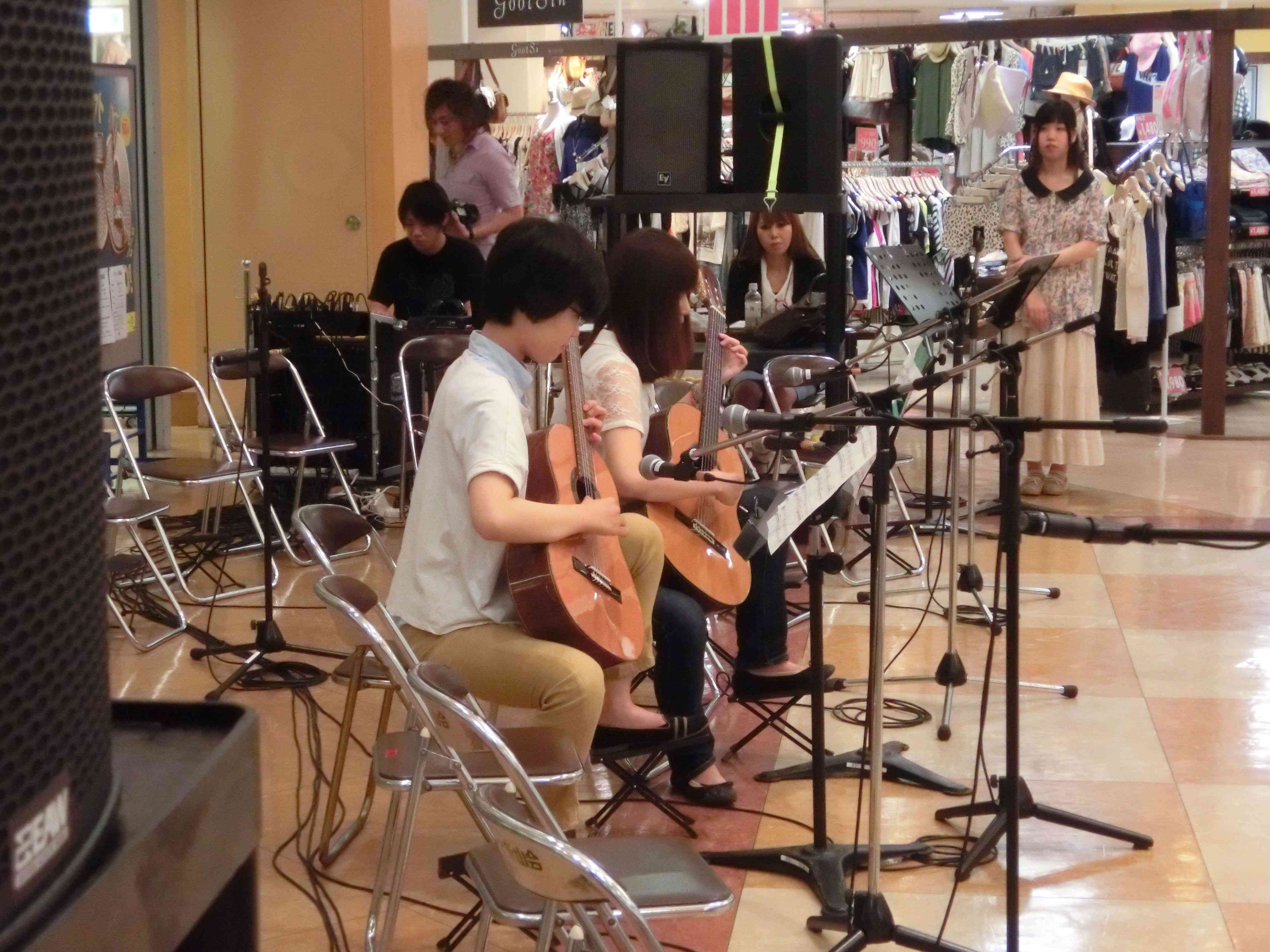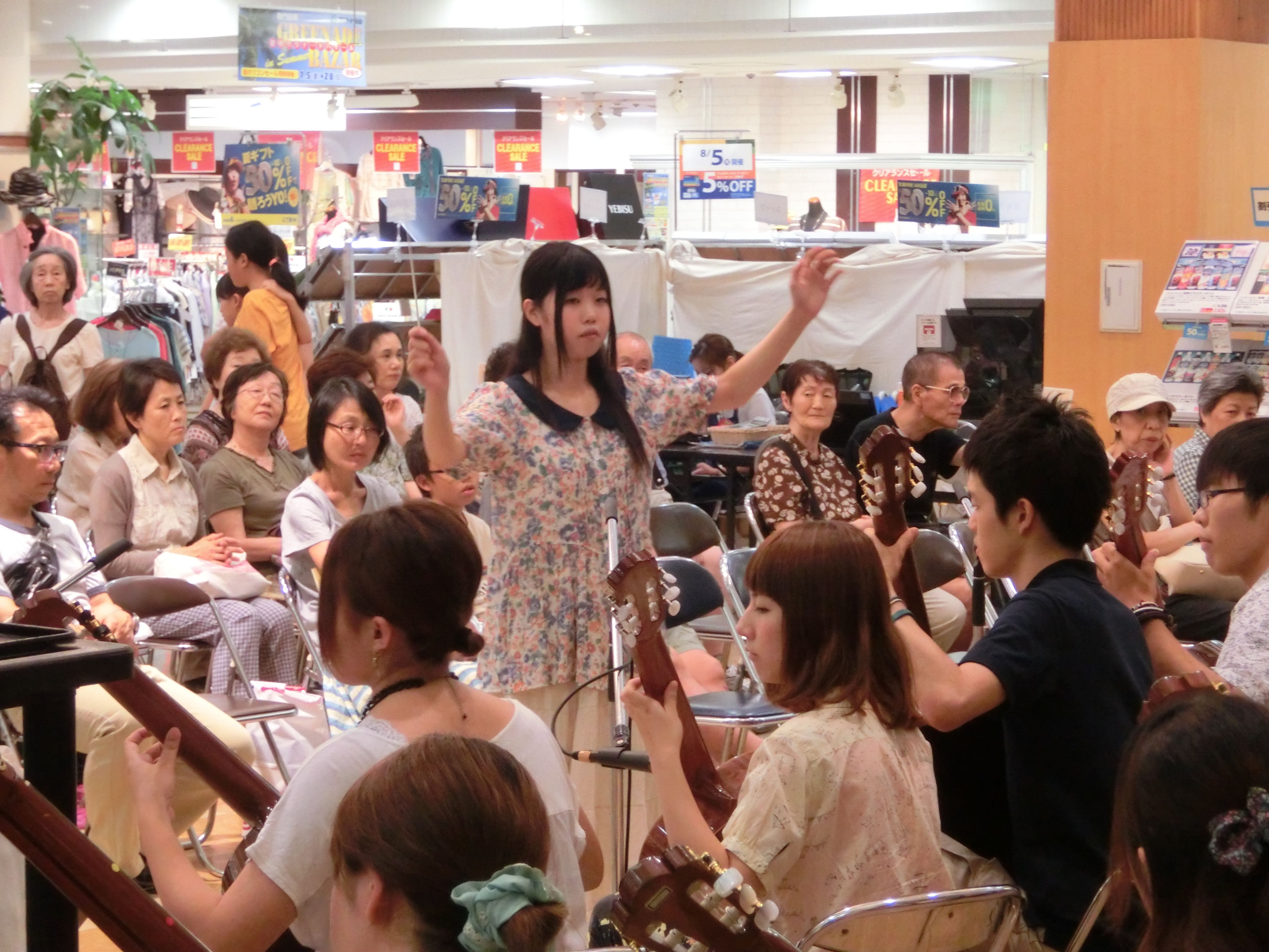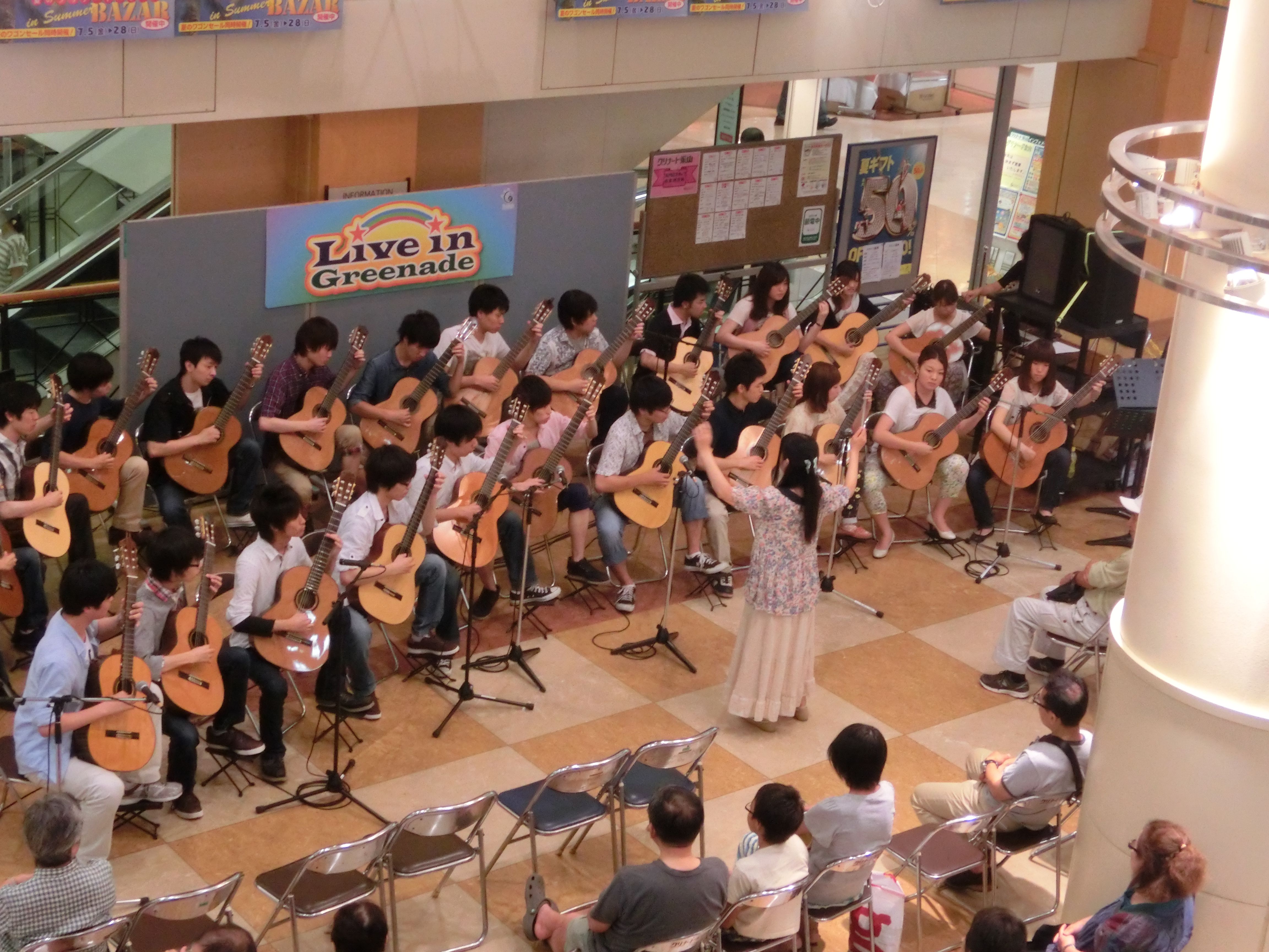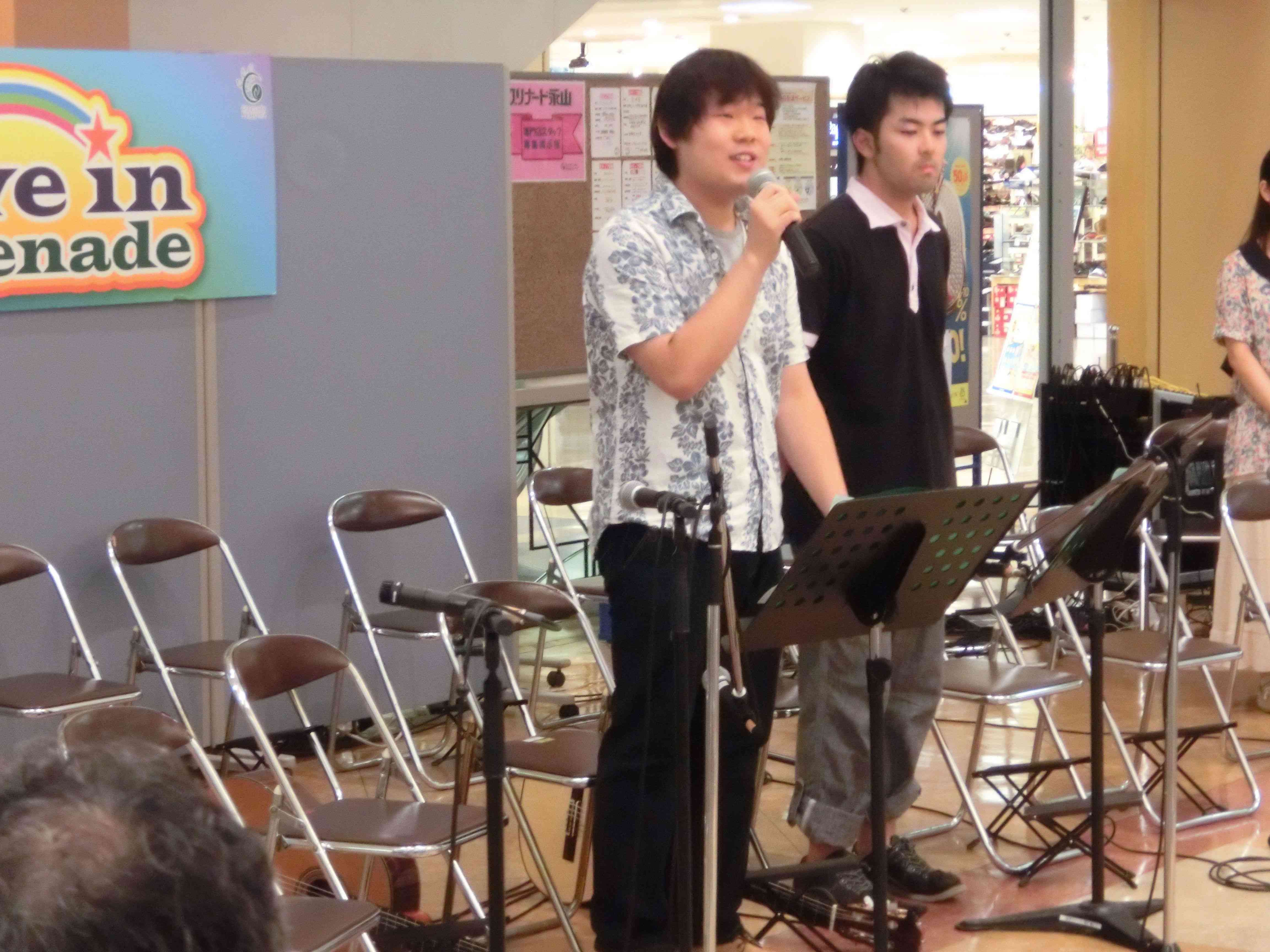 永山コンサート! 活動記録 2013年12月31日 7月28日(日)に、京王永山駅から徒歩1分のグリナード永山にて、古典ギタークラブのコンサートが行われました。 画像は先輩方。衣装がシュールです。外部のコンサートなので、開演まで大きな控え室を使わせていただきました。 事前打ち合わせ中。こいつはナメてる。 本番前なので若干緊張気味ですが、皆出番を楽しみに待っています。しかしそれでも本番までなかなか待ち時間があったので、 飽きた。 飽きた。 あきと。そしてようやく開演となりました。 開演前。大勢のお客様に来ていただきました。 ドビュッシーの月の光。しっとりとスタート。 雪原のリビングデッド。両サイドの表情が曲に合ってますね。 よっくんの独奏。音が繋がっていて素晴らしい演奏でした。 二年生最強コンビ。相変わらず音質が美しい。 くしみずのお二人。大変華やかでございます。 ここで二年生二人によるトークショー。 ギャラリー苦笑い。 そして演奏。二人ともノリノリでいいね。 師弟奏ならぬ姉妹奏。会場中にメロディーが響き渡って気持ちが良いです。 ここから新指揮者の初舞台!ぐっさんの指揮で夜空ノムコウを演奏します。 指揮・演奏共にバッチリで、楽しい合奏となりました。 今年の永山コンサートは多くのお客さんが聴いて下さり、とても楽しい演奏会になりました。来年も是非、開催させていただきたいと思います。おまけ 原口先生と この人おわり PR