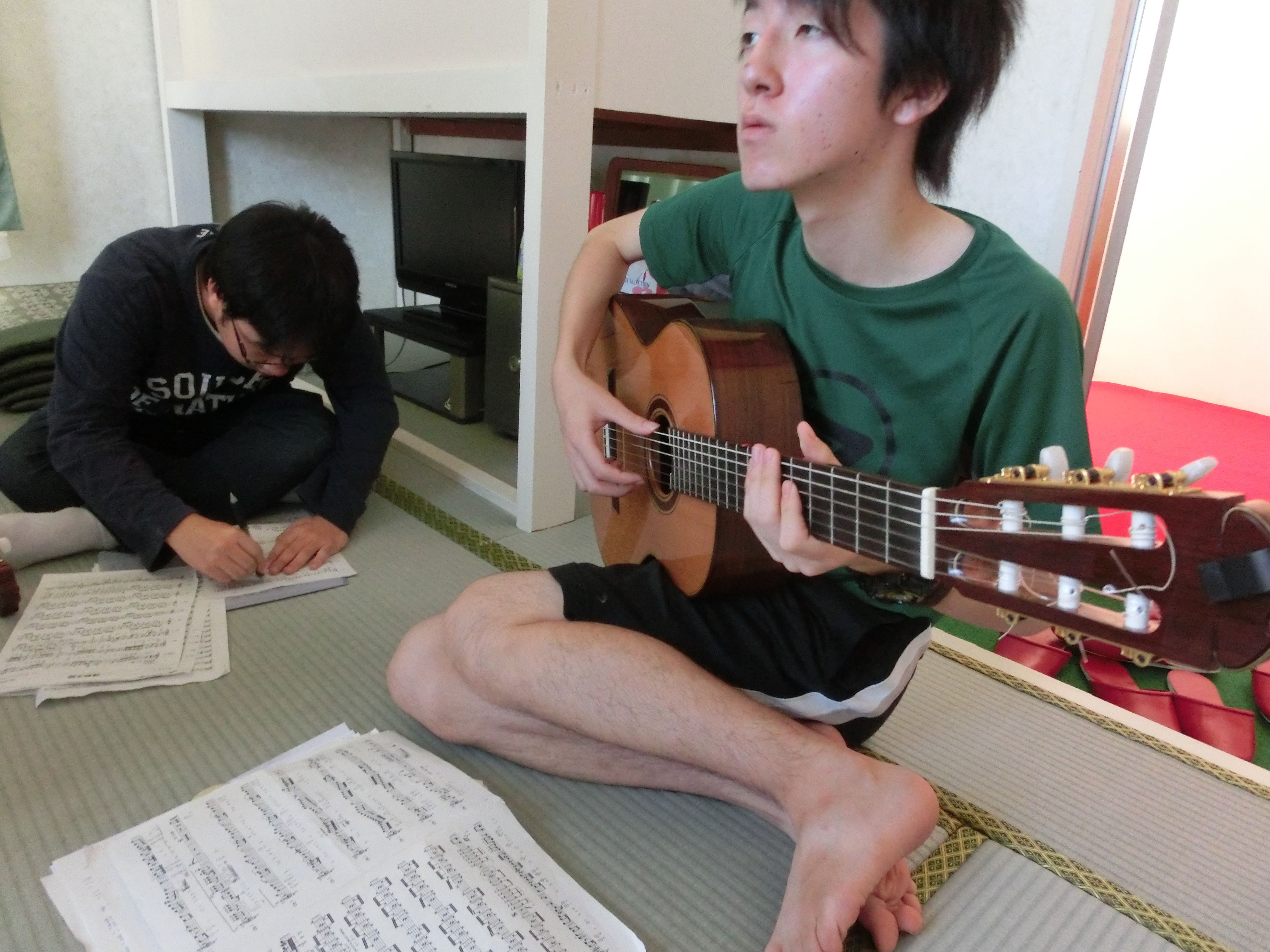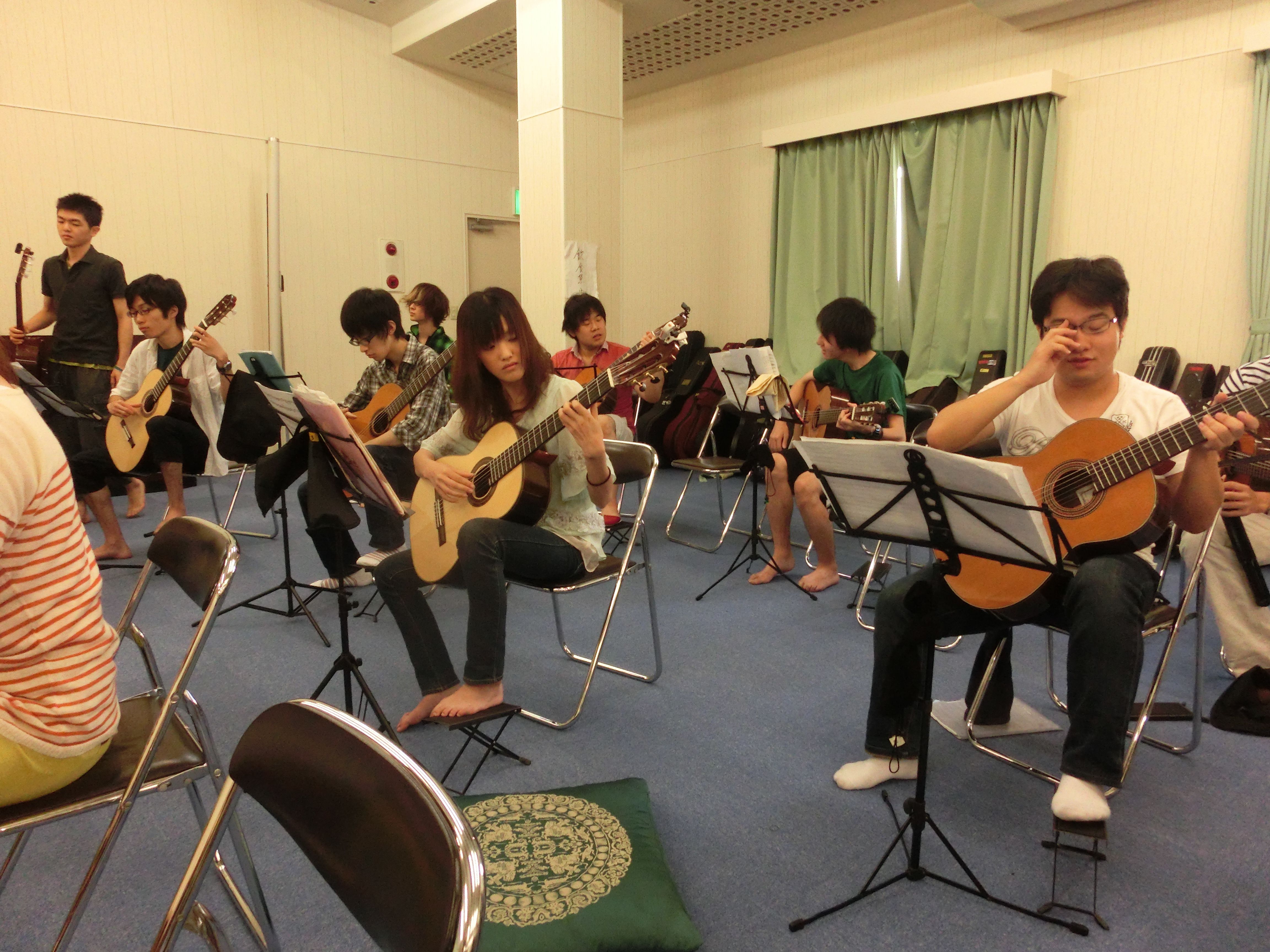個々の部屋での練習をたっぷりしました。クラッシックギターは弾く場所を選ばないからいいですね。