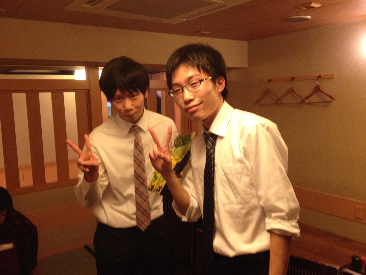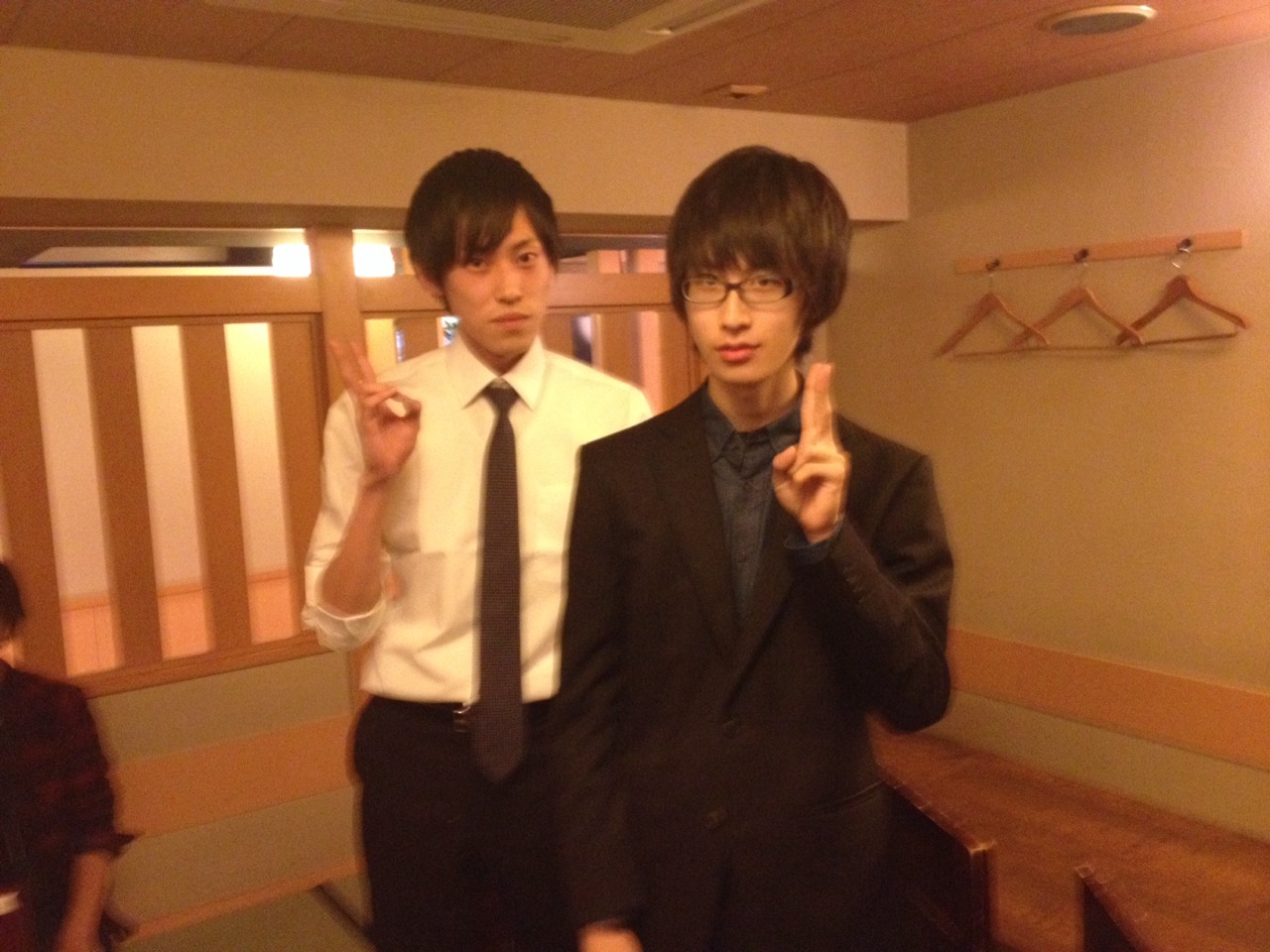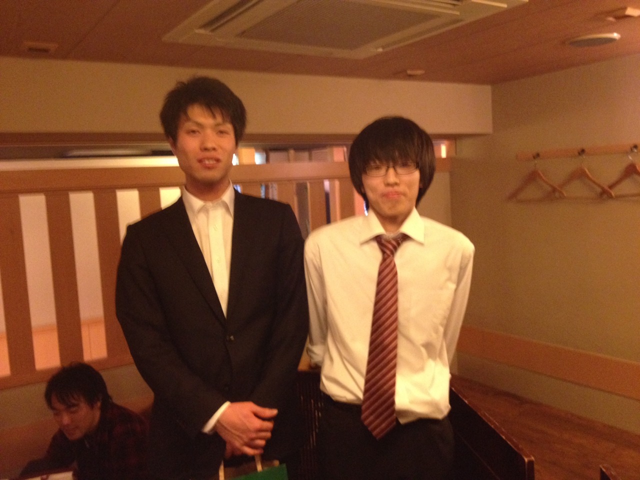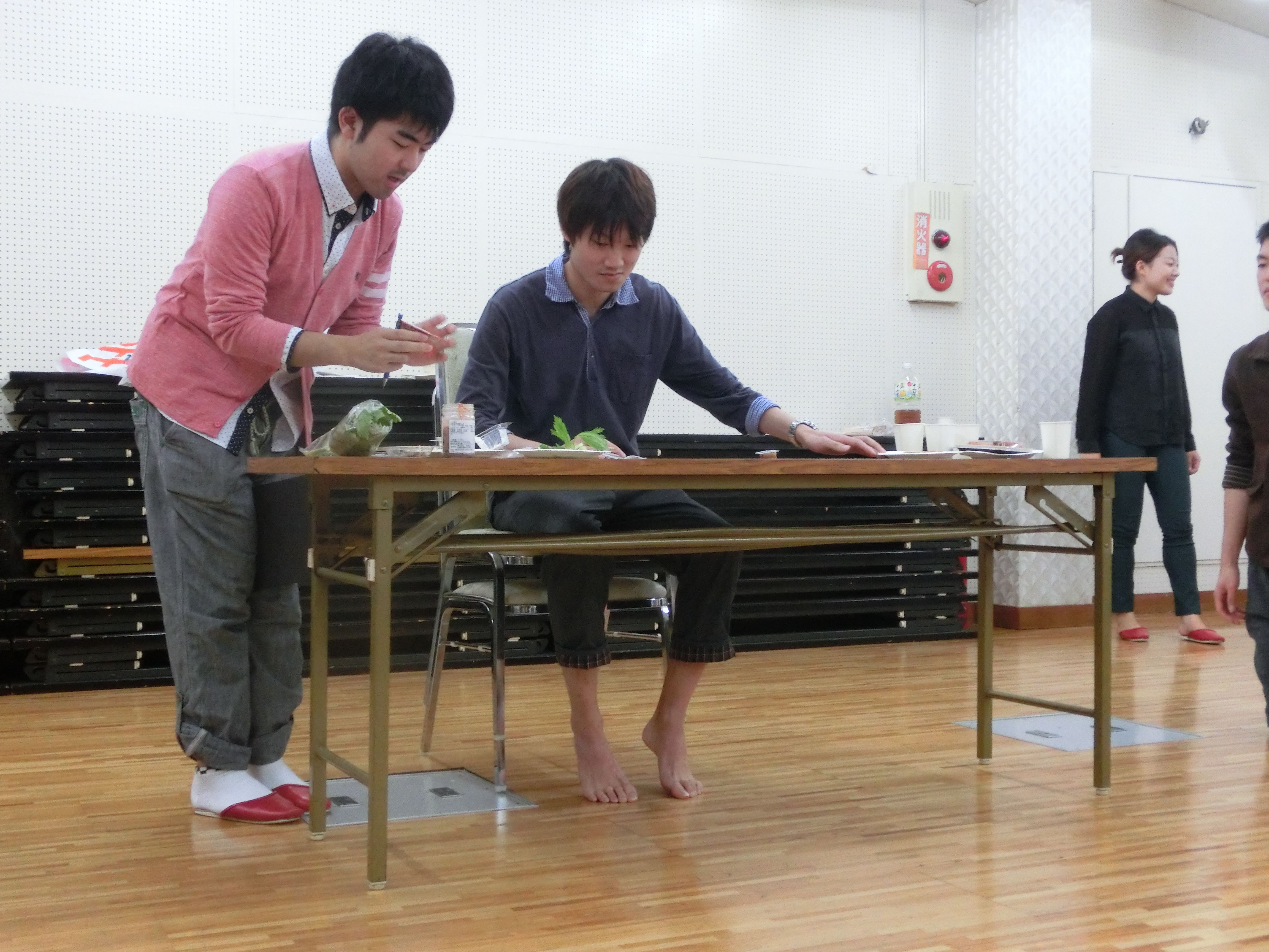 飲み会中に練習する二人。何て熱心なんだ。