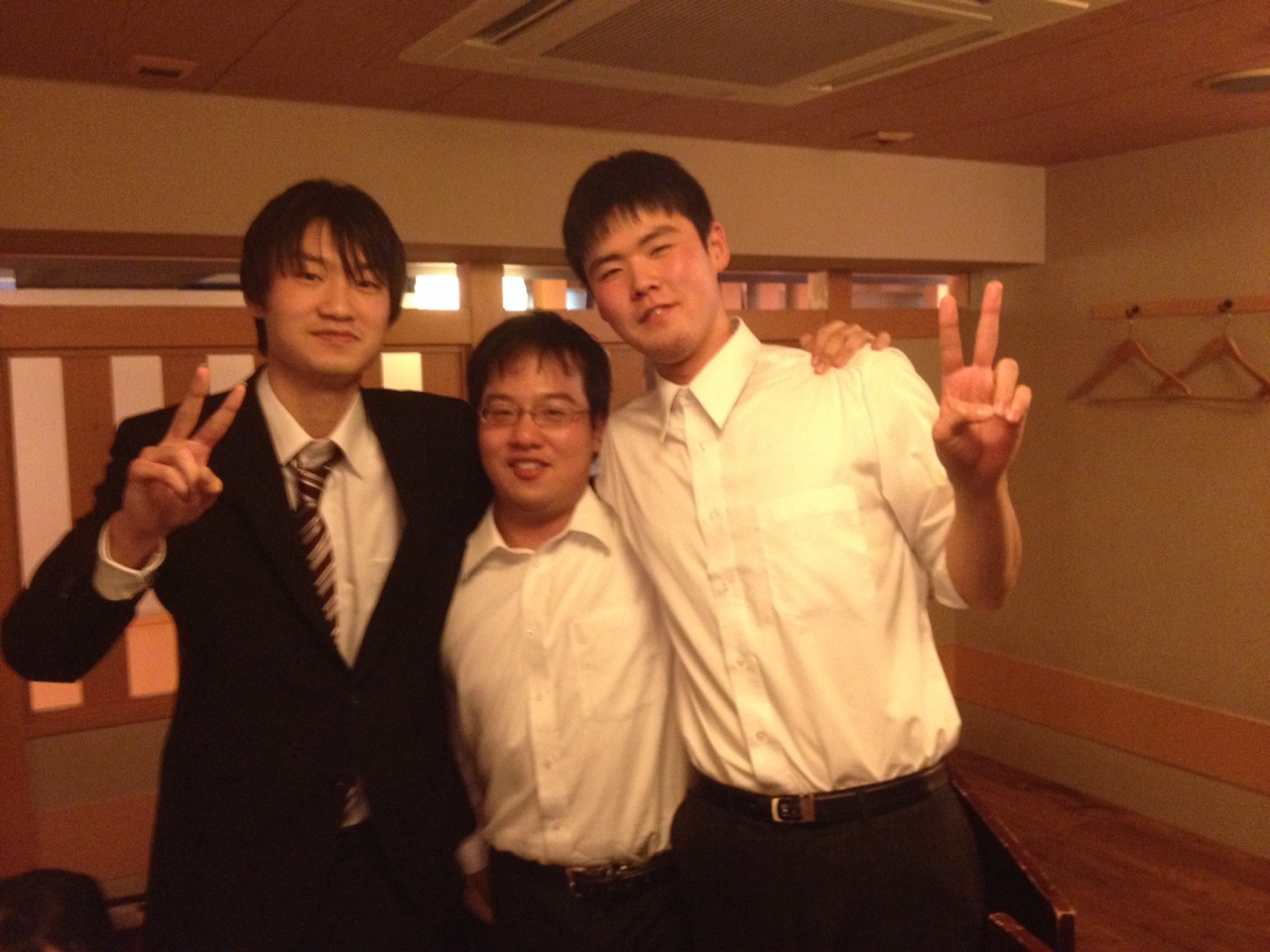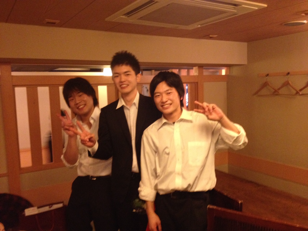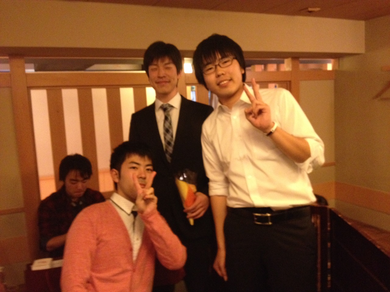 飲み会中に練習する二人。何て熱心なんだ。