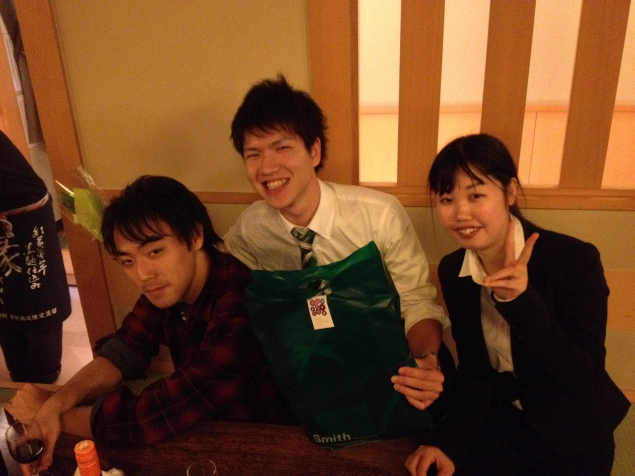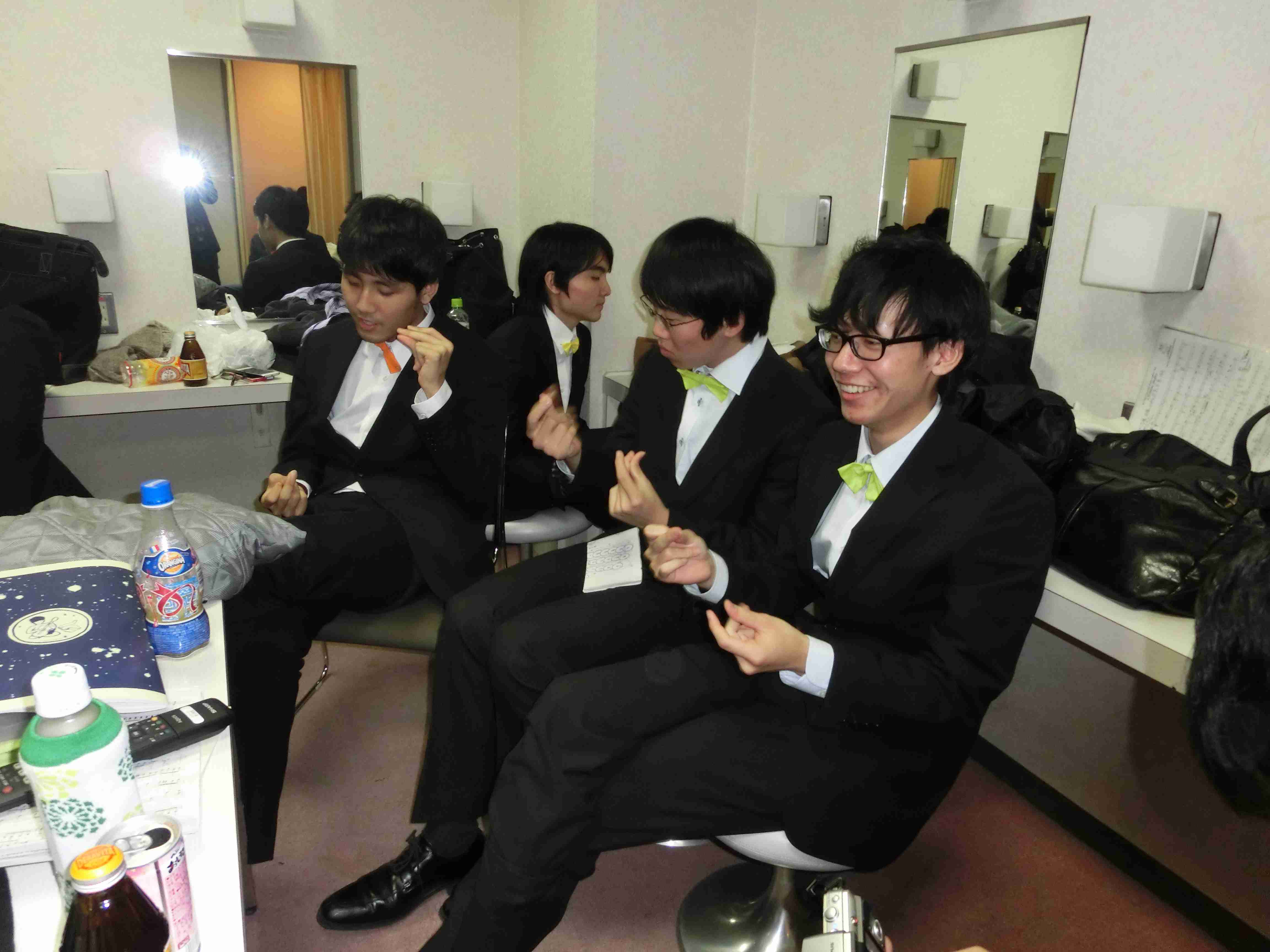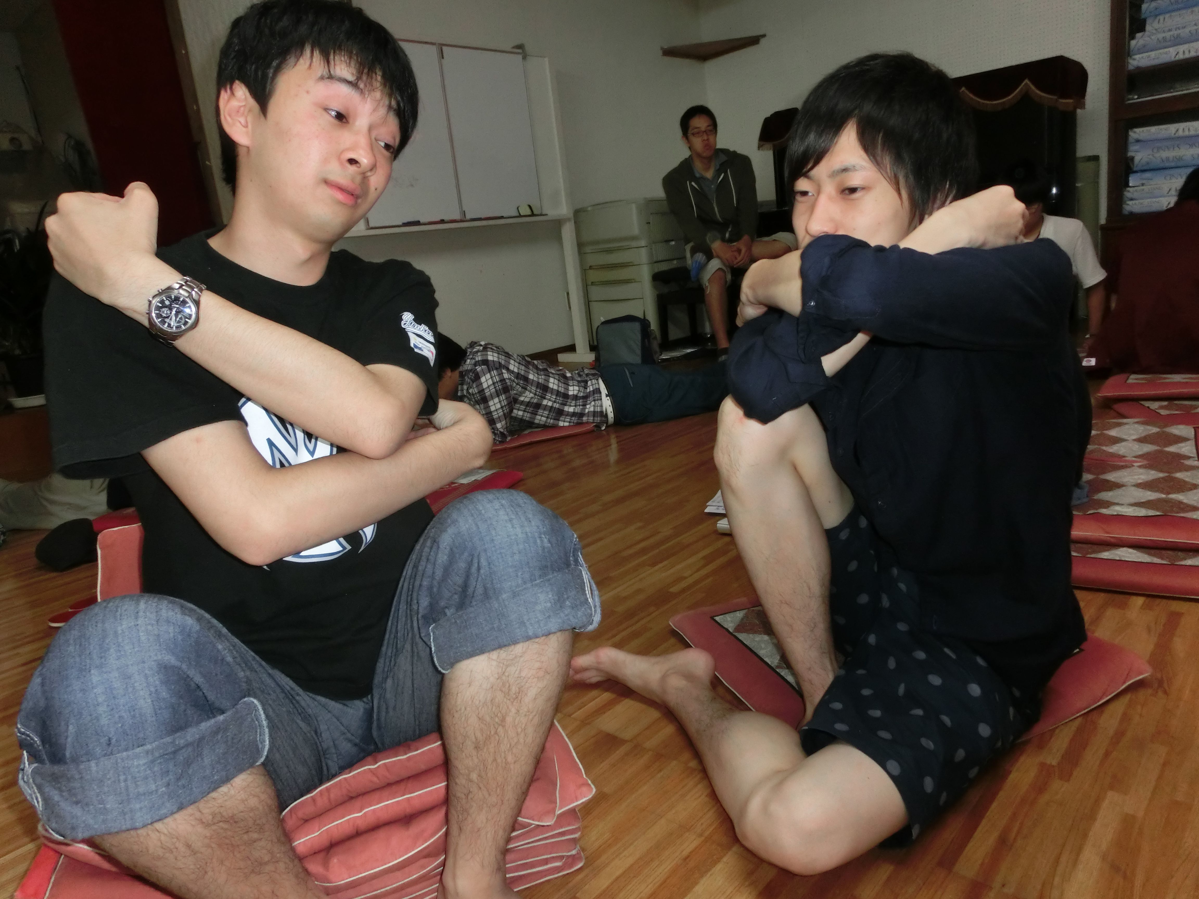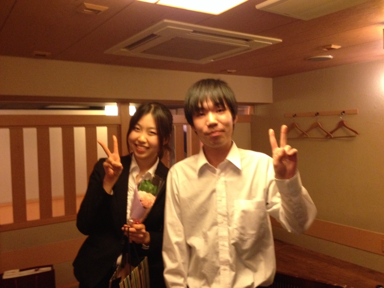 飲み会中に練習する二人。何て熱心なんだ。