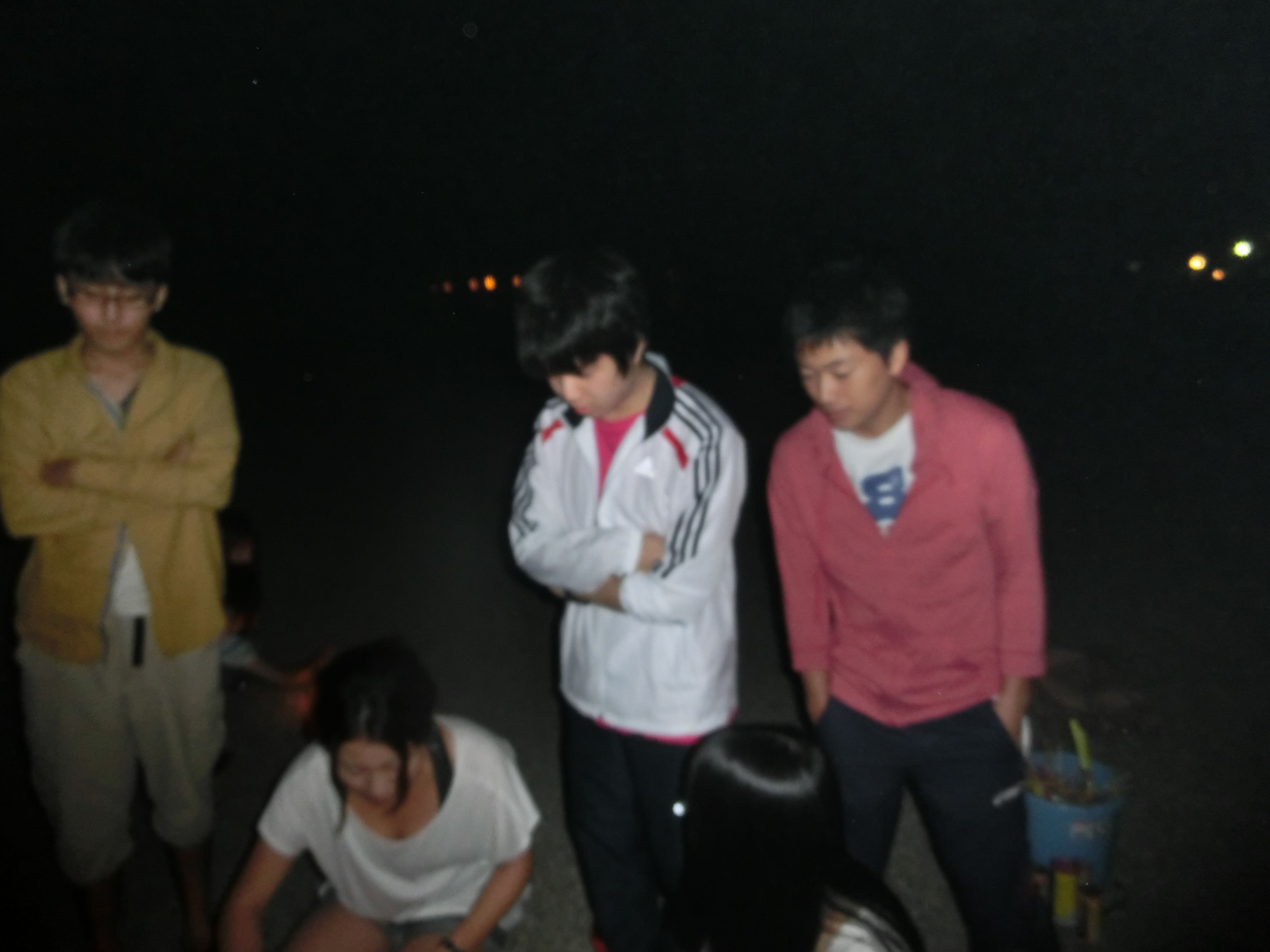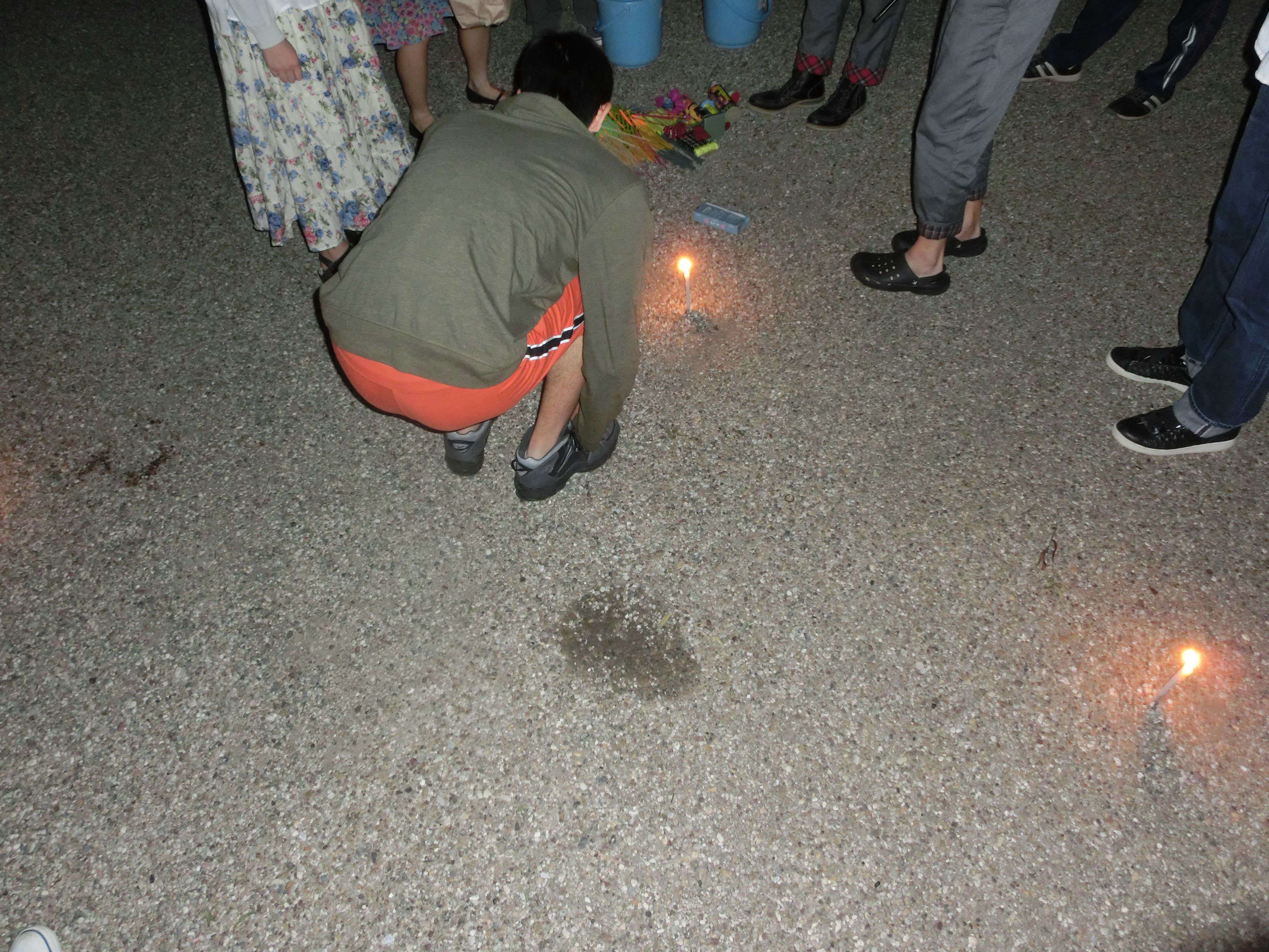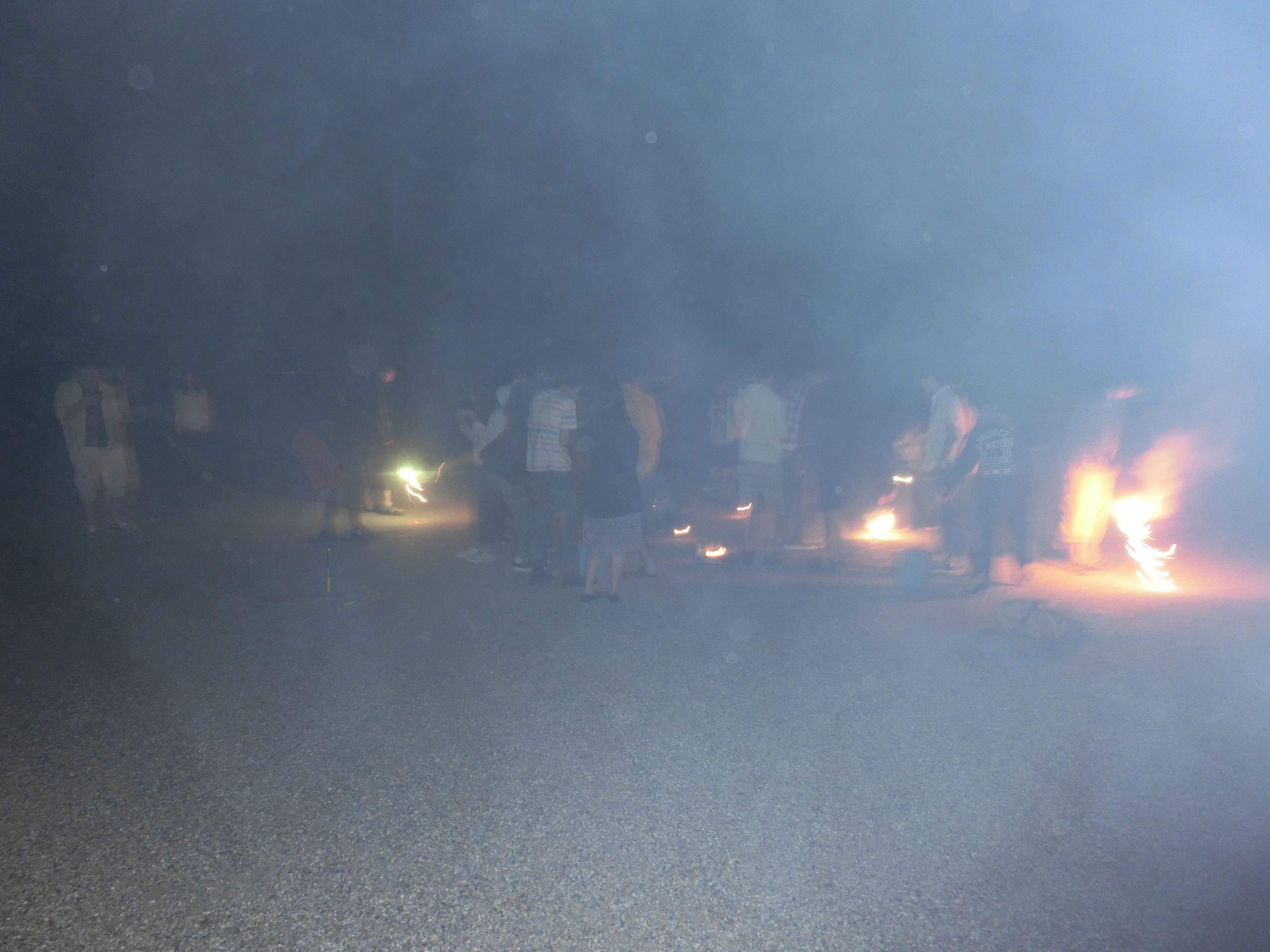 花火も尽き、ろうそくに群がる男たち。