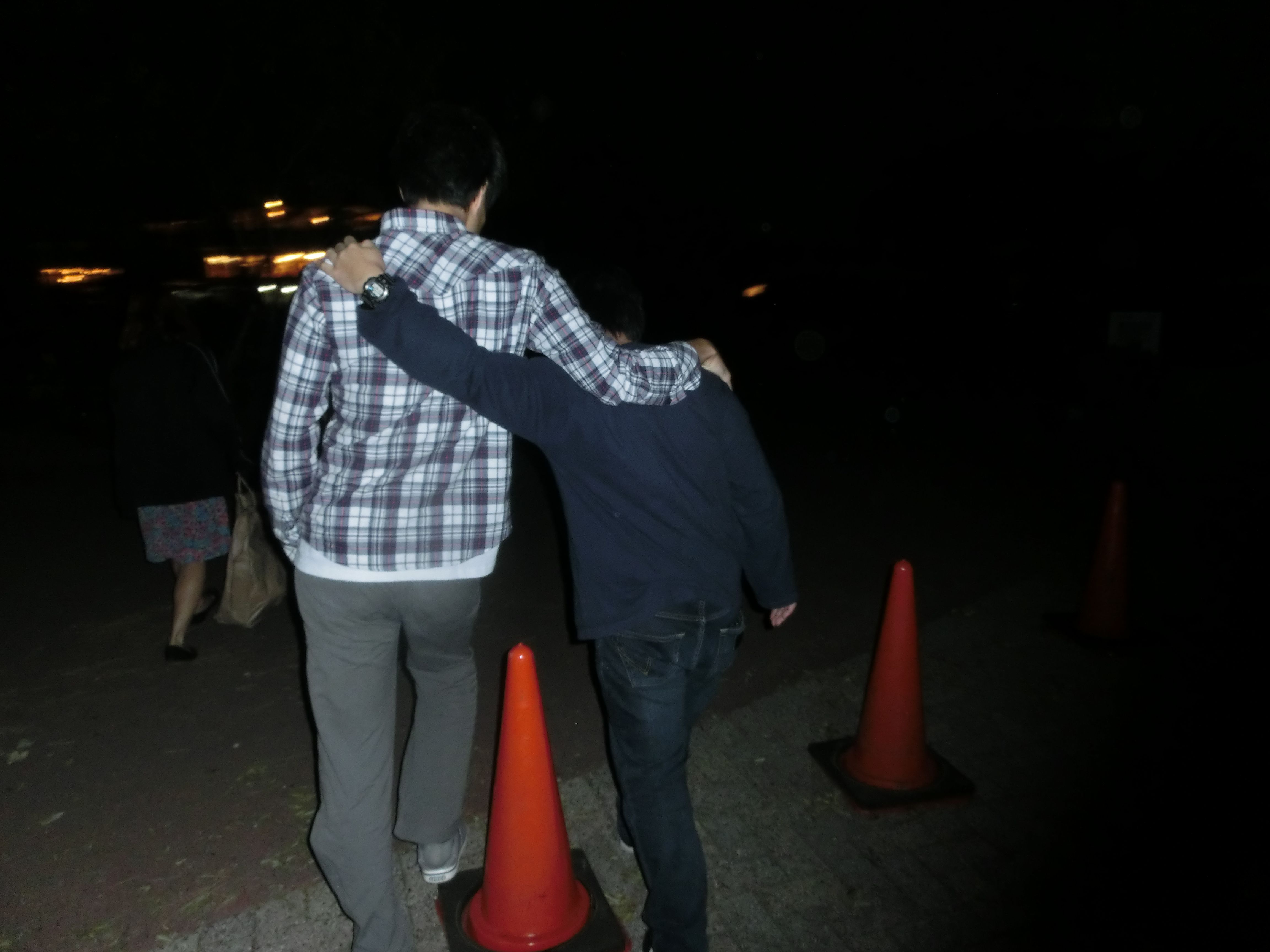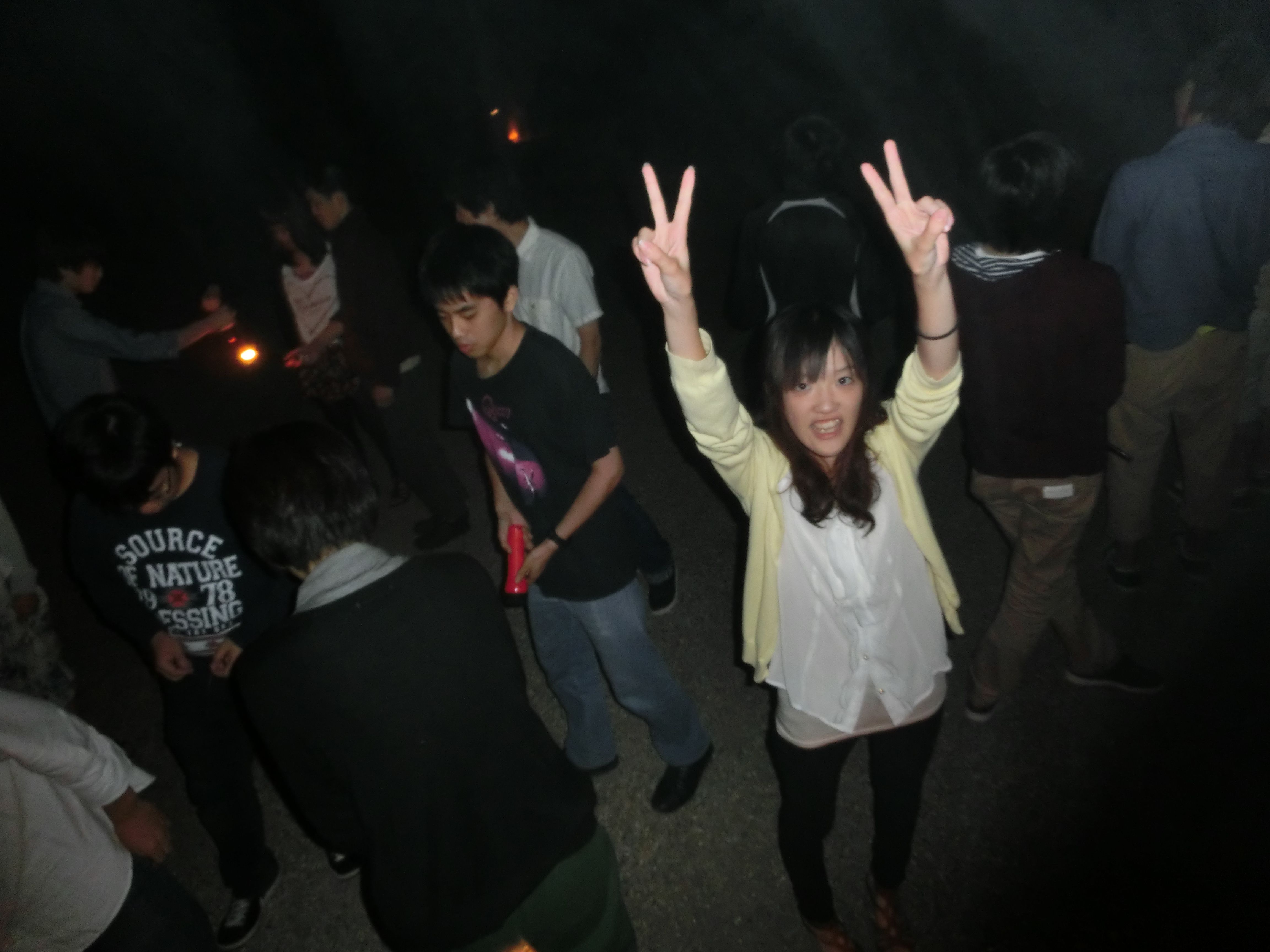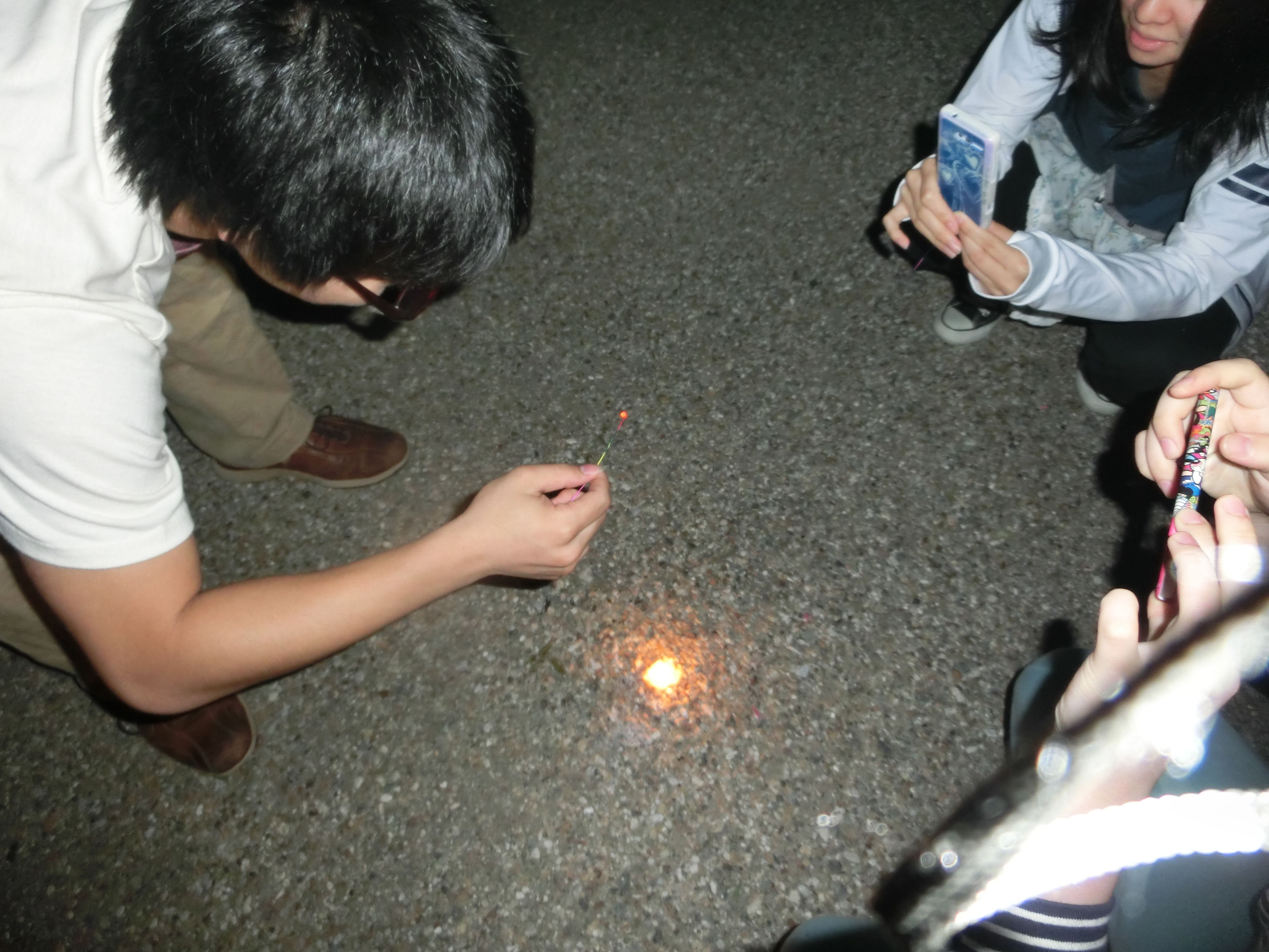 花火も尽き、ろうそくに群がる男たち。