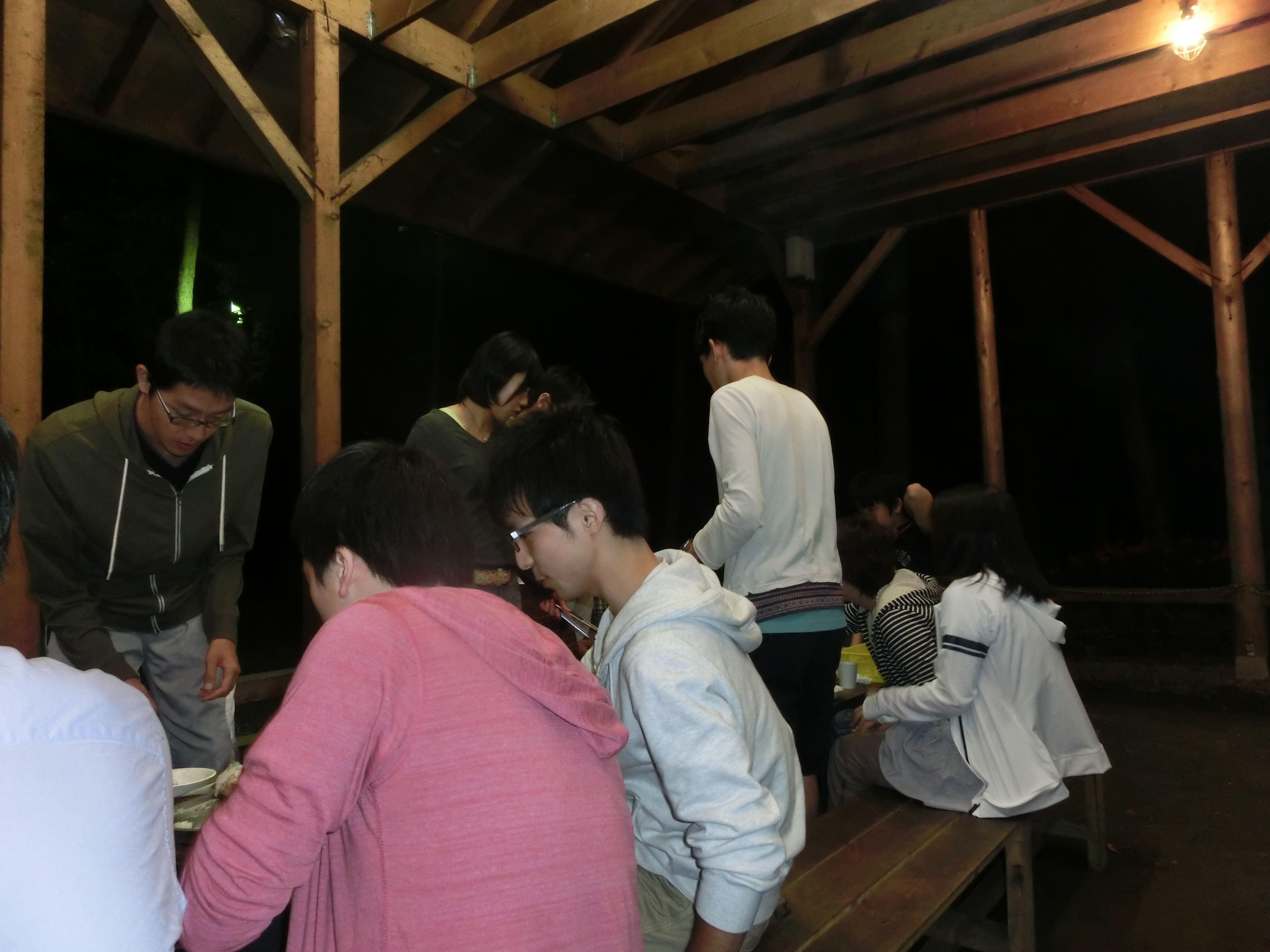 宿の外に集合。まだ9月だが山梨の夜は超寒い。