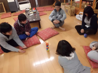 私はジェンガをやってました。いかに崩さないかという挑戦に挑み、無駄なチームプレイを発揮!!朝方4時ごろまでやってました。