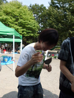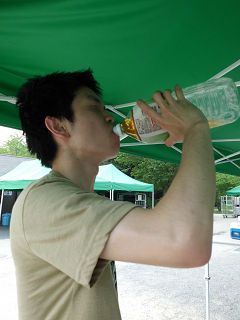 1Lペットボトルを軽々と流し込む男。(イケメン)