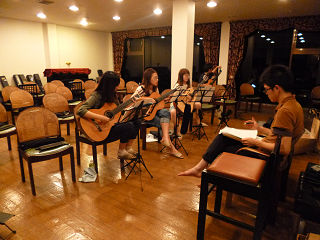 個々の部屋での練習をたっぷりしました。クラッシックギターは弾く場所を選ばないからいいですね。