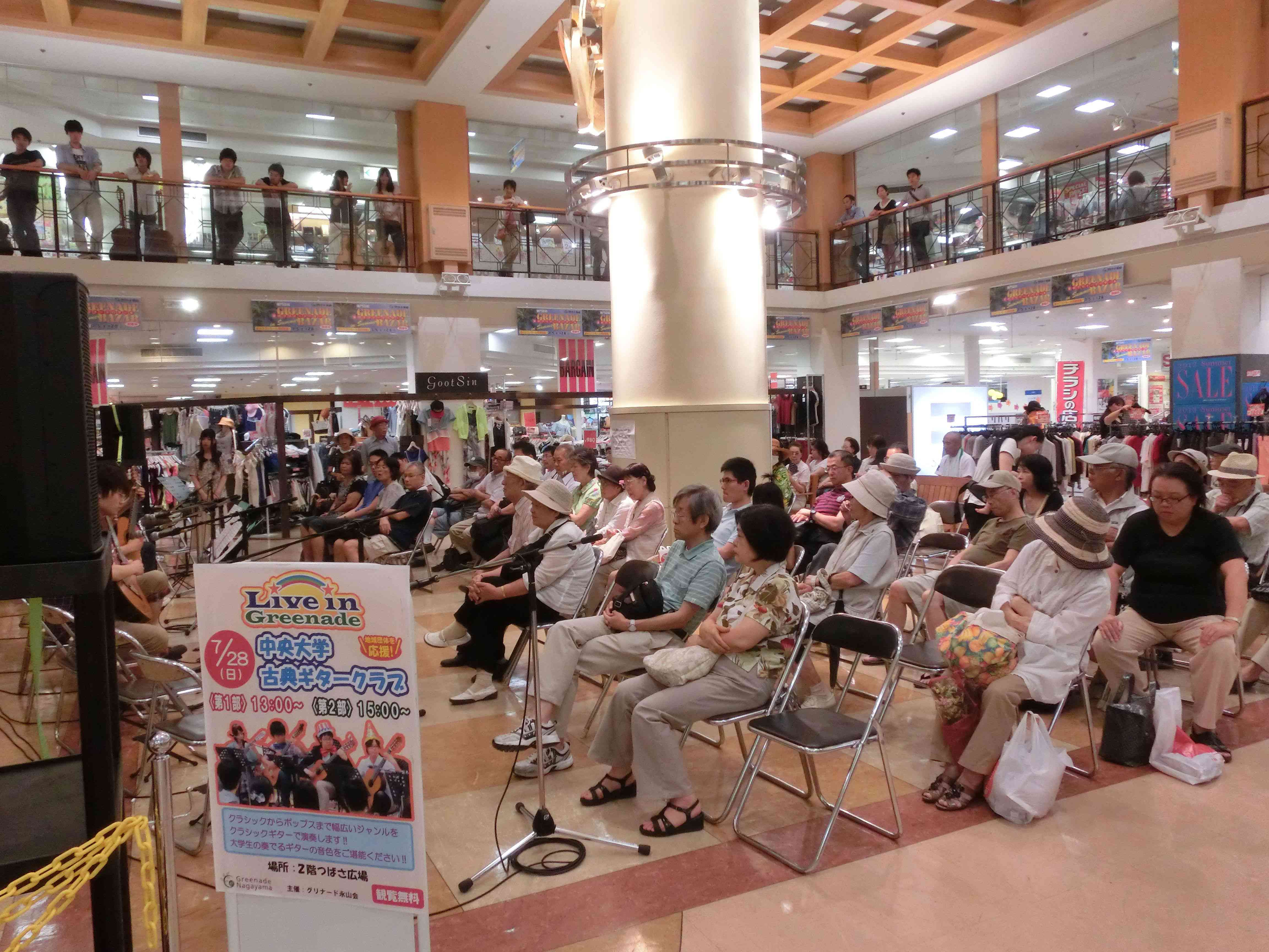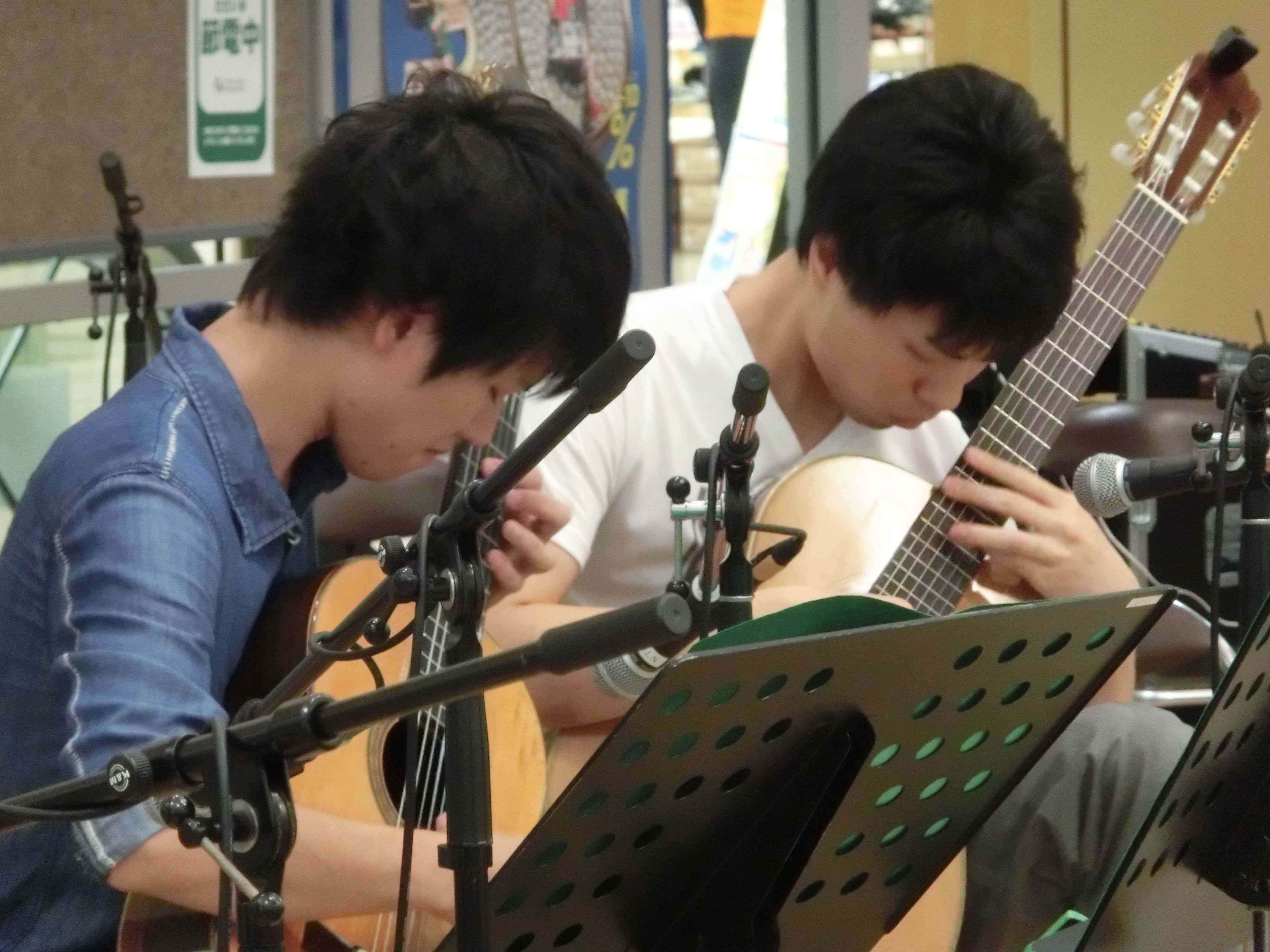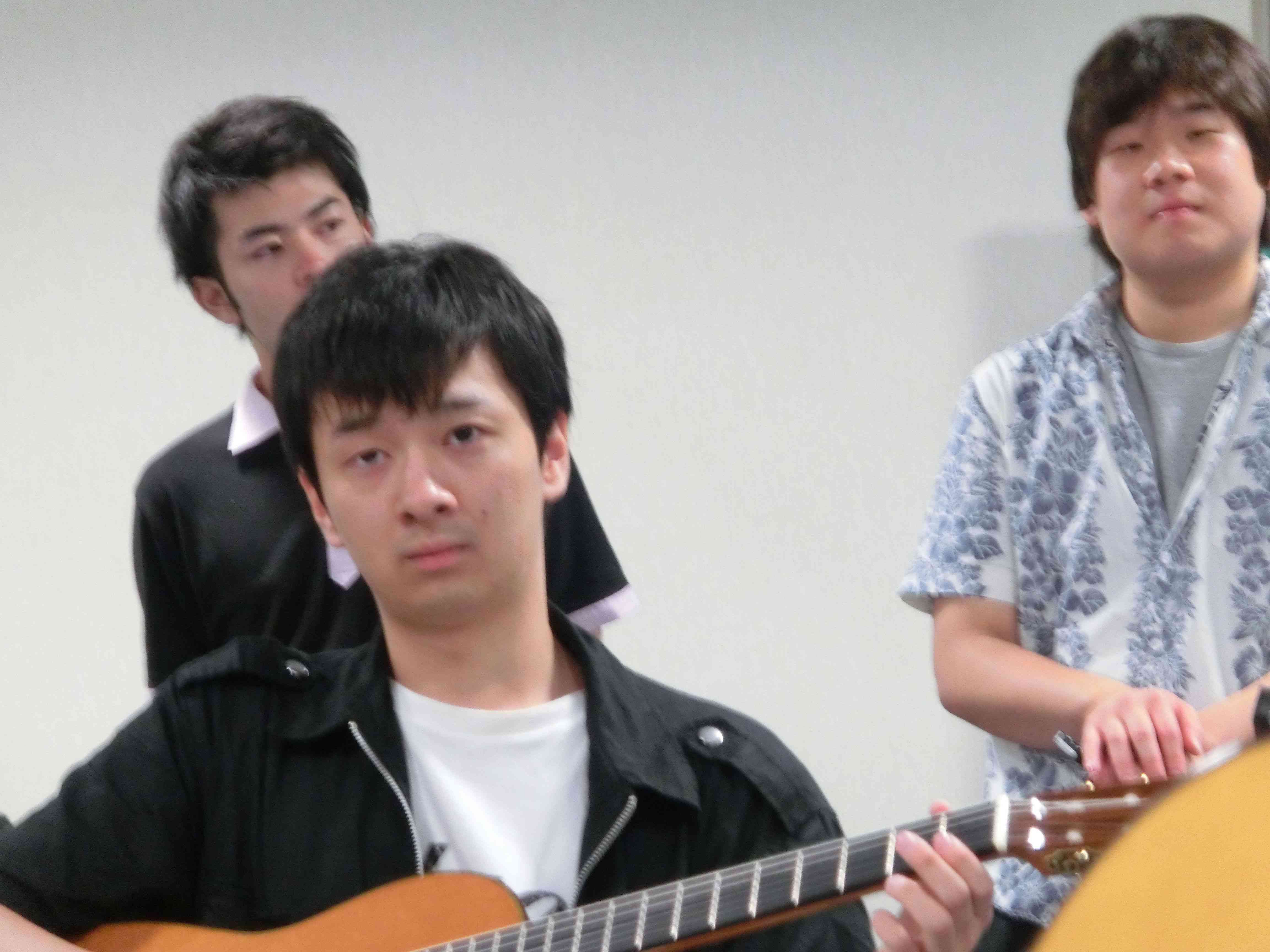 永山コンサート! 活動記録 2013年12月31日 7月28日(日)に、京王永山駅から徒歩1分のグリナード永山にて、古典ギタークラブのコンサートが行われました。 画像は先輩方。衣装がシュールです。外部のコンサートなので、開演まで大きな控え室を使わせていただきました。 事前打ち合わせ中。こいつはナメてる。 本番前なので若干緊張気味ですが、皆出番を楽しみに待っています。しかしそれでも本番までなかなか待ち時間があったので、 飽きた。 飽きた。 あきと。そしてようやく開演となりました。 開演前。大勢のお客様に来ていただきました。 ドビュッシーの月の光。しっとりとスタート。 雪原のリビングデッド。両サイドの表情が曲に合ってますね。 よっくんの独奏。音が繋がっていて素晴らしい演奏でした。 二年生最強コンビ。相変わらず音質が美しい。 くしみずのお二人。大変華やかでございます。 ここで二年生二人によるトークショー。 ギャラリー苦笑い。 そして演奏。二人ともノリノリでいいね。 師弟奏ならぬ姉妹奏。会場中にメロディーが響き渡って気持ちが良いです。 ここから新指揮者の初舞台!ぐっさんの指揮で夜空ノムコウを演奏します。 指揮・演奏共にバッチリで、楽しい合奏となりました。 今年の永山コンサートは多くのお客さんが聴いて下さり、とても楽しい演奏会になりました。来年も是非、開催させていただきたいと思います。おまけ 原口先生と この人おわり PR