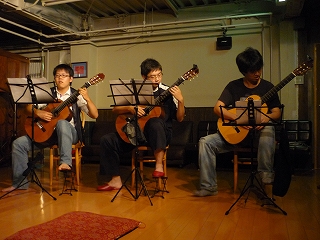 第43回中央大学古典ギタークラブ定期演奏会 お知らせ 2010年09月18日 今年の定期演奏会は日時:12月3日(金)場所:パルテノン多摩開場:17時30分18時00分開演:18時00分18時30分です。重奏、独奏の曲目は10月15日に決まるのでちょっと待っててくださいねー!迫力の合奏は……『You're Beautiful』(ジェームス・ブラント)『日本の四季 冬から春へ』『コーヒールンバ』(ジョゼ・マンゾ・ベローニ)を予定しています。お楽しみに!