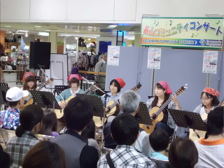 永山コンサート2012レポ! 活動記録 2012年08月22日 どーもこんにちは(^^)/ガガです!!今回はこちら6月3日に行われた永山コミュニティコンサートのレポをしたいと思います。・・・時が経つのって早いですね(言い訳)まずは!!2女ちゃん重奏晴れた日にほのぼの。女子力で観客を引き寄せる作戦!3女も負けません「森のくまさん」の主題による変奏曲バンダナは森に迷い込んだ女の子をイメージしてます。なんかちらっと聞こえたんですけど給食のおばさんではありません誰だ言ったやつ出てこい1番前の女の子が曲中ずっと跳ねながら喜んでいました。おばちゃん癒されました・・・。ちなみに控室はこんな感じ結構ぐちゃぐちゃしてま(ry独奏「冬の散歩道」今回のコンサートでは2年生3人が独奏に挑みました。いやなにがすごいって見てくれている方がこんなにいるなか独奏ですからね・・・・すごい。そして少しでも立ち止まって聴いてくれ方々に感謝!!ありがとうございました(;_:)!!さてさて続いて全員2年生のUnder The Sea皆手作りの海の生物のお面をつけて演奏♪かわいい。てあれ、なにこいつww 魚人wwお次は見上げてごらん夜の星を師弟奏!あたたかい演奏でした!!感無量。さてさて最後は合奏。2年指揮者様のデビューです!!ハウルの動く城より「人生のメリーゴーランド」気づけば2階からも立ち止まってみてくれている方がいるほどでした。今年もたくさんの方に演奏を聴いてもらえ、うれしく思います!!今回のコンサートは実はあまり練習の時間が割けない中、苦しんだりもしましたが、一回一回の演奏できる機会を大事にしていきたいなと改めて思いました。(多分皆そう思いました。)てなわけでこれからもよろしくおねがいします!!おまけ荷物を運びに会室に一回戻ったのですがなぜかプチ似顔絵大会に発展O田さん謎の才能発揮・・・・・んではまた~!(^^)!