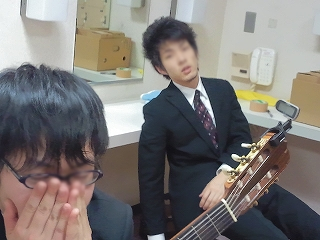 第43回定期演奏会レポート 活動記録 2010年12月06日 こんにちは!ヅラーです!さー、定期演奏会も無事成功して、3年生も泣きながら(部長がね)卒業となったんですが、舞台裏はどんな感じだったのかをすこしレポートしましょう。ちなみに、ヅラーも引退です……そう、文面だけ見てると若いけどね……さてさて、12月3日。この日は朝にものすごい勢いで雨が降っていましたが、昼ごろにはすこし暑いくらいまでの天気になりました。まあ、みんな会場こもりっきりだからあんまわかんないんだけどね!1、2、3年生が協力してステージを走り回って準備をしていると、一気に緊張感が高まっていきました。特に部長とステマネ(今日のリーダー)は頑張ってました。ステマネなんて服、裏と表逆に着るくらいテンパッてたからね。※手前がステマネ↓まあそんなこんなで本番。1番緊張してたのは2年指揮者(手前)と、3年指揮者(ニヤニヤ)。いやー、本当お疲れ様。2年指揮者は一時、歩き方を忘れてたからね。肩だけで歩こうとしたからね。相当なお仕事をこなしたなと思います(しみじみ)。他の出演者(独奏、重奏)さんたちも嗜好をこらした演出でがんばりました。制服とかね。制服とか、ペアルックとか。ユニクロとか。こちら、TICOTICOのふたり。こちら、女子控え室。こちら、男子控え室。きたない。テンションが上がって落ち着けない。おちつけない!!!もちろん、ギリギリまで練習もしました。と、舞台裏はこんな感じでしたが、なにより演奏会が成功してよかったなと思います。……ほんとよかった……!!ご来場のみなさん、協力していただいた皆さん、部員たち、本当にありがとうございました。うまく言えないが、なんだかすげえことしたんだなあと思います、しみじみ。……ちなみにこの後、我々は夜の街で今日一日酷使した神経を緩ませるとともに、今度は肉体を酷使しました(浴びるぜーっ! 浴びちゃうぜぇえええ! せんぱぁああーい! こ、こうはあぁああい! あれは良い演奏だったぜ……! よ、よせよっ……/// 大変です、●●くんがトイレから出てきません!しかもトイレットペーパー食べてます! な、なにぃ~! はい、ラストオーダーでーす、みたいな)。ヅラーは始発を降りて思いました。なに、この朝日超きれい。みんな、おつかれ! ありがとう!by現役最後のヅラー
