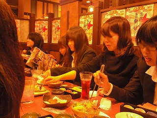 女子会! コテギの日常 2010年11月22日 さてさて報告が遅くなりました。我々コテギには毎年恒例と言われるイベントが多々存在していますが、その中でも昨年から新しく登場したのがこれ。「女子会」そう、乗せられたのです。某赤いトウガラシに。目的はあれです。集団があり、そこに男女がいれば、「えぇ~あたしぃ~」とか言う普段は男の手前ニコニコしている女が現れ、でもまあ、ほら、醜い争いってしたくないから、あたしたち、仲良しです♪っていうキャラ演じてるけど、まあ今夜はね、今夜だけは化けの皮剥がして腹割って話そうよ。みたいなヤツです(嘘です、たぶん)。他の俗説としては上級年(年増)の下級生(若いっていいね☆)勉強会。「ちょっとぉ~、●●! あんた誰狙いなワケ?!」会議。などなど。まあ、とりあえず女子だけで騒ごう会なのです。コテギって意外かも知れませんが女子のほうが多いんです。幹事ヅラー(知ってた!? オンナノコなんだよ☆)のグダグダな仕切りなのに、結構集まってくれました。いや、と言うか代わりに仕切ってくれたAさんとOさん、本当ありがとうございます。内容としては、すみません、ここでは申し上げられません……そんな、ね、誰と誰ができてるとか、●●くんって△△だよねっ! とか、そんな……「けっきょくぅ~、男ってのはねぇ~」みたいな。「あ、ハイハイそーですね、勉強になりまーす」みたいな。ま、とりあえずいくつになっても女子は女子だなと思いました。みんな思いの他、楽しんでくれたならば結構です。そしてみなさん、お気づきだろうか。こいつら、意外と食べる。2010/11/21byヅラー 「男子、負けるな」